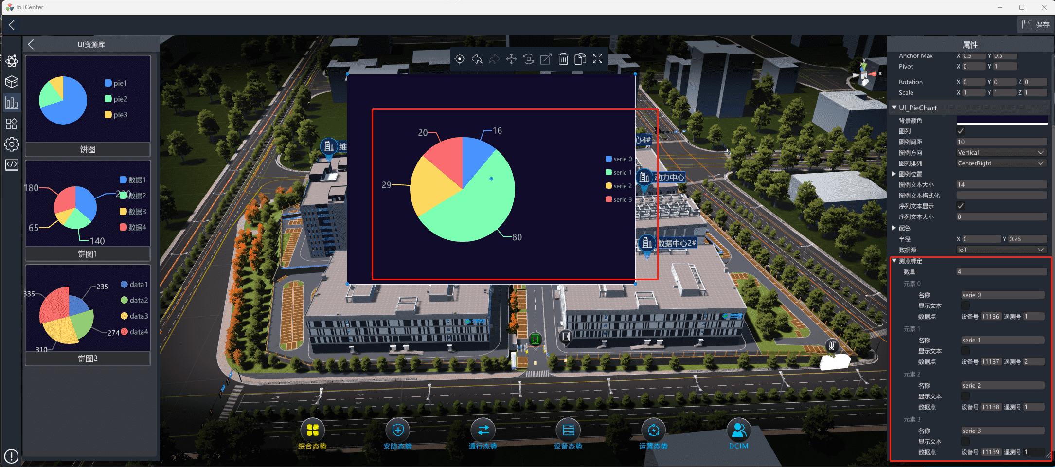 绑定测点:数量代表图例的数量,每个图例均可以设置名称并绑定对应的测点。