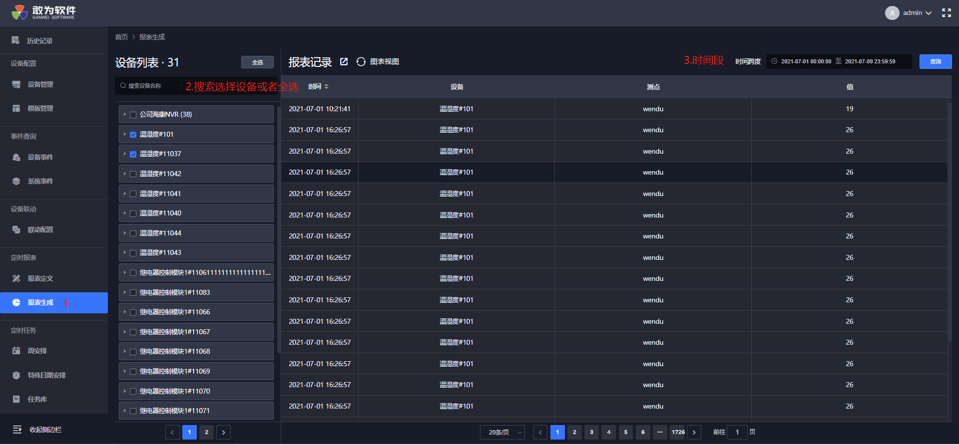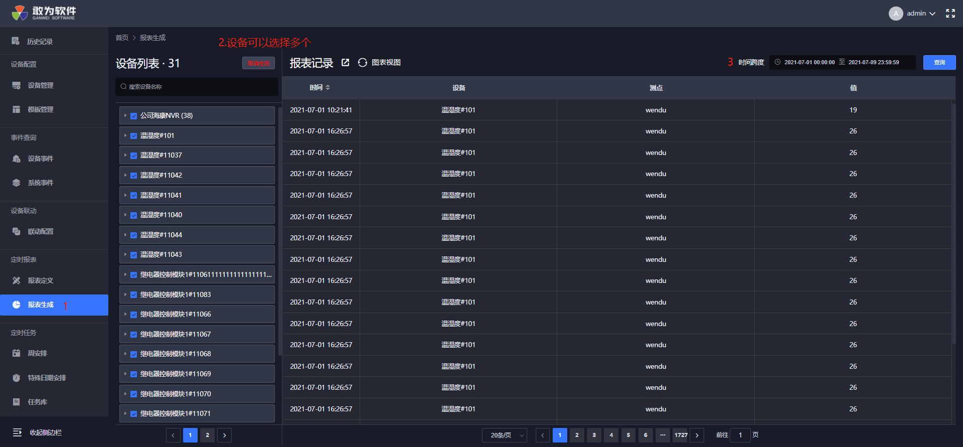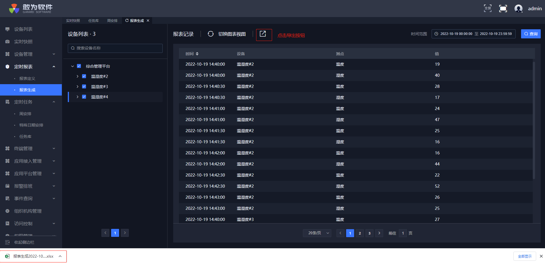 | 2 | 支持导出报表生成记录 | 支持按照时间导出单个或多个设备的历史数据,以表格方式呈现。 |