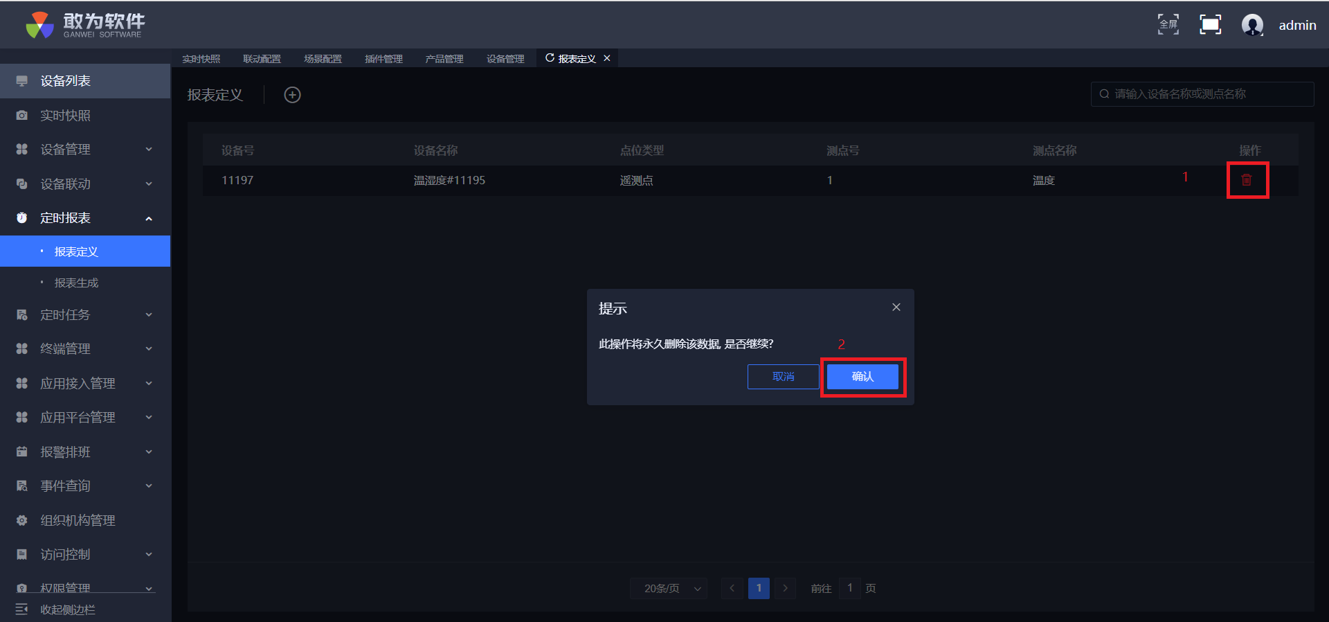 在弹窗中点击确认,删除成功。