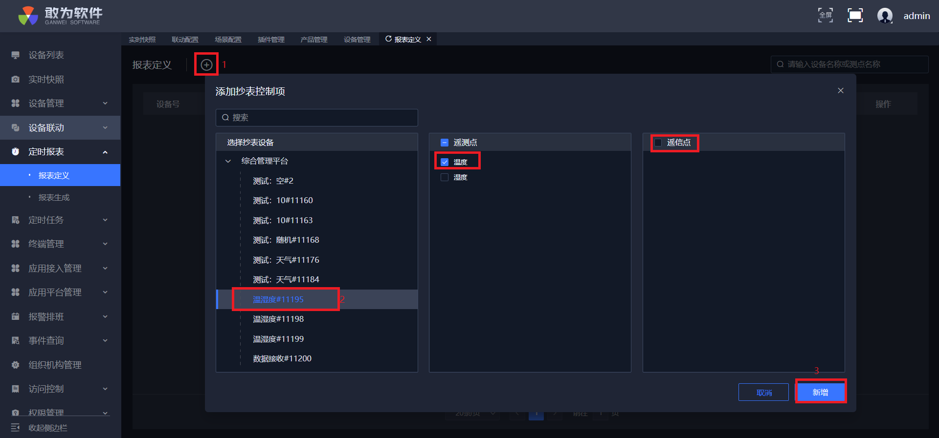 点击添加按钮,选择抄表设备和设备抄表项。