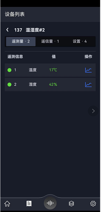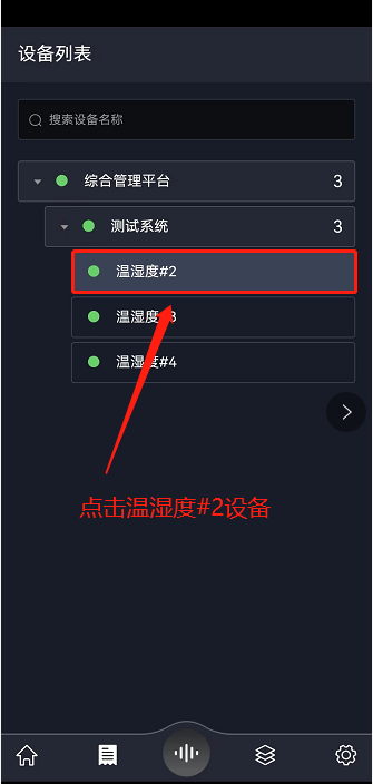 在设备列表中点击“温湿度#2”设备,查看设备测点信息、下发指令。