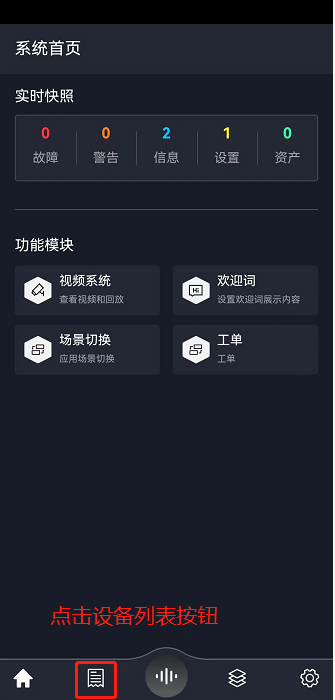 登录成功后点击首页下方的“设备列表”按钮
