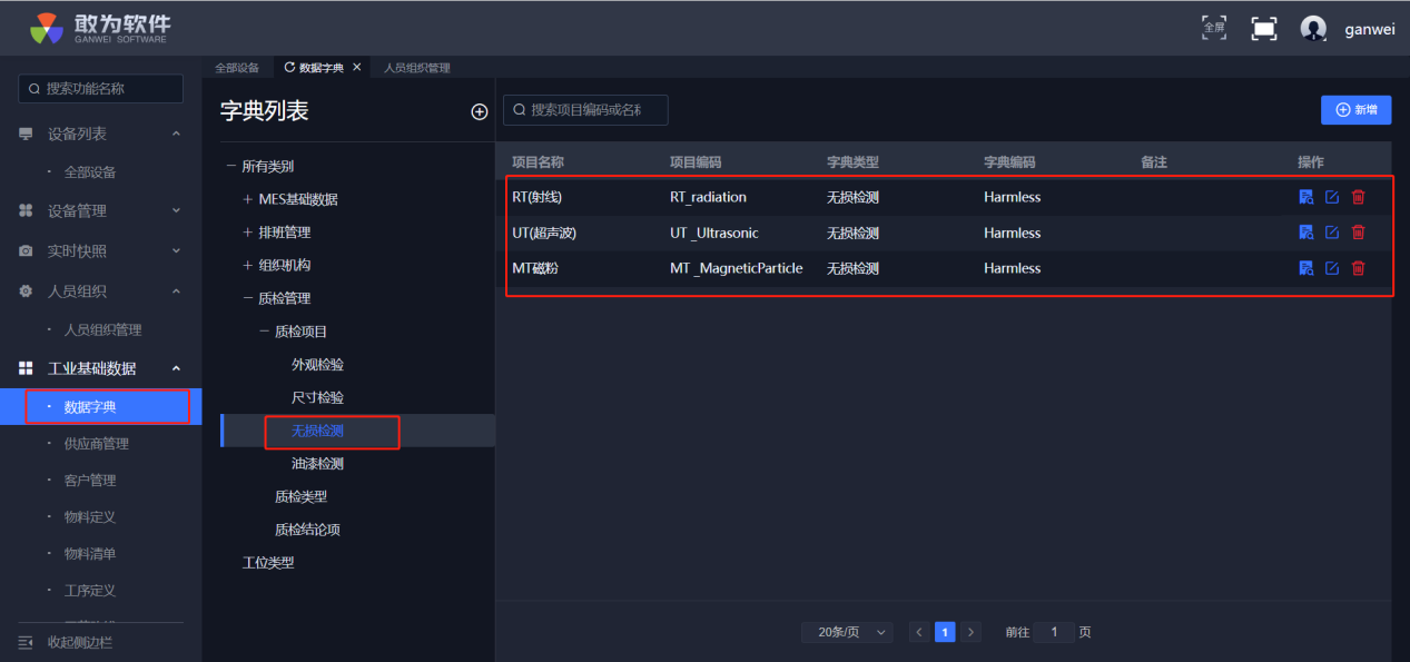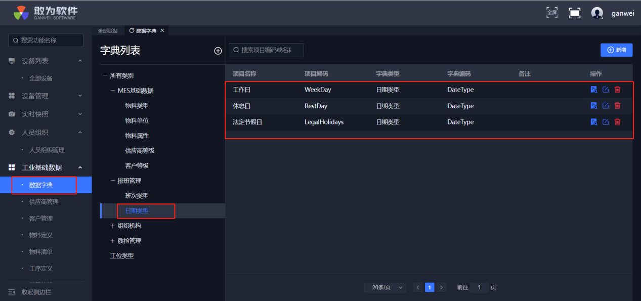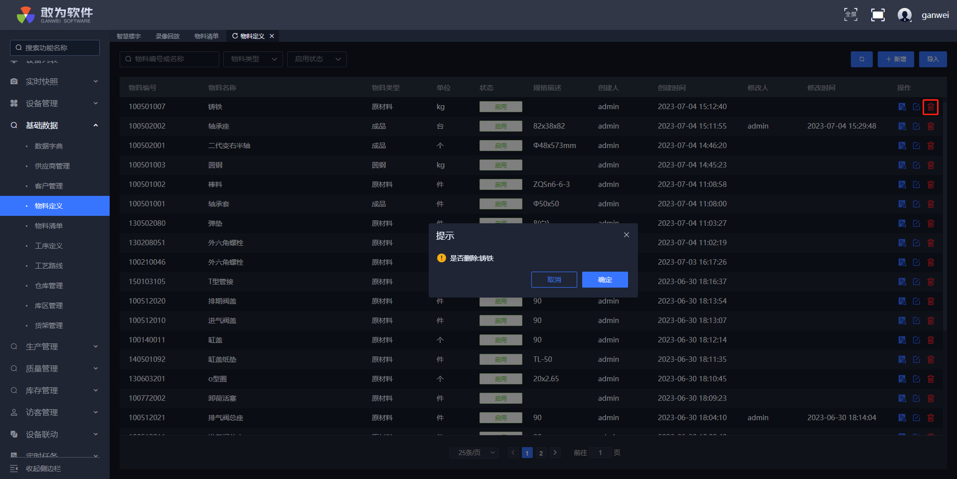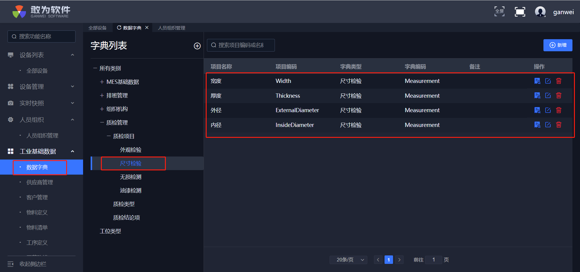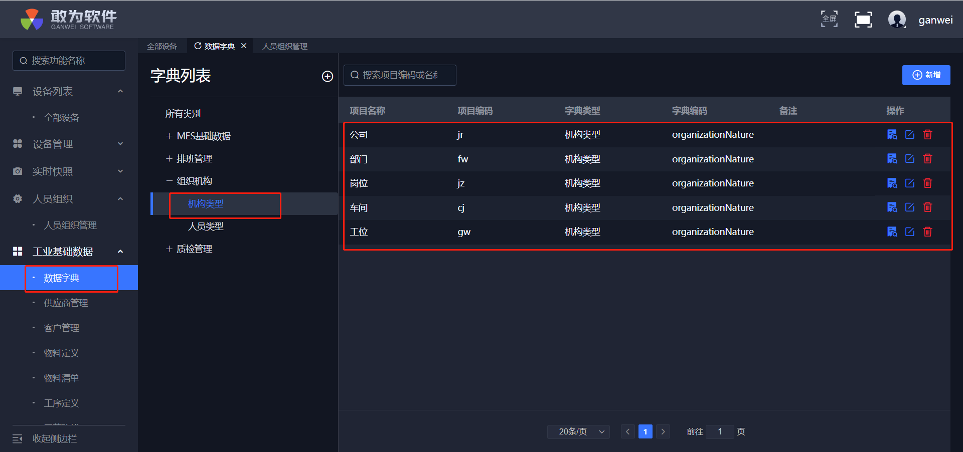 | 1 | 数据字典 | 支持物料类型、物料单位、物料属性、供应商等级、客户等级、班次类型、日期类型、质检项目、质检类型、质检结论项、机构类型、人员类型的自定义与维护。 |