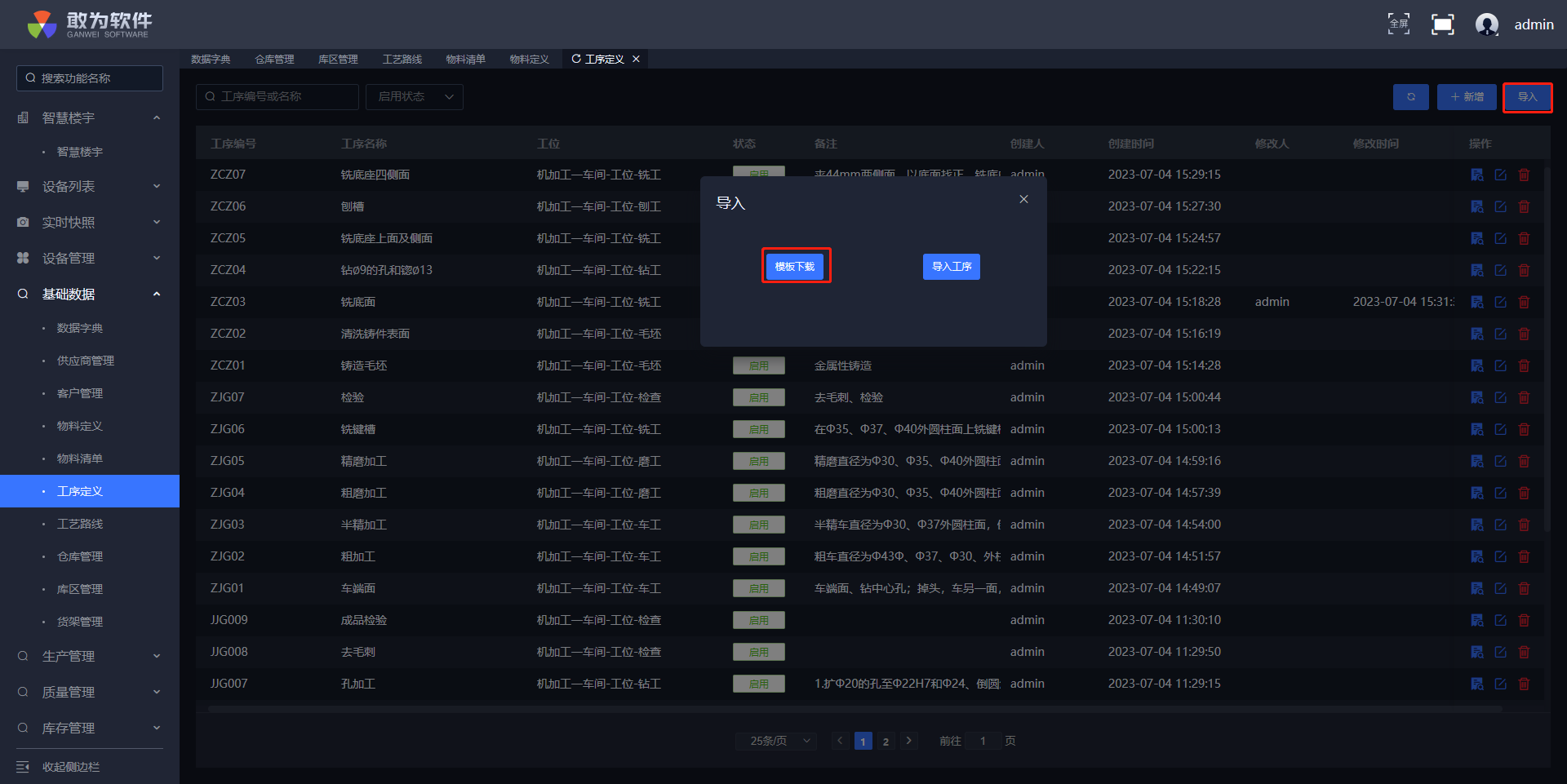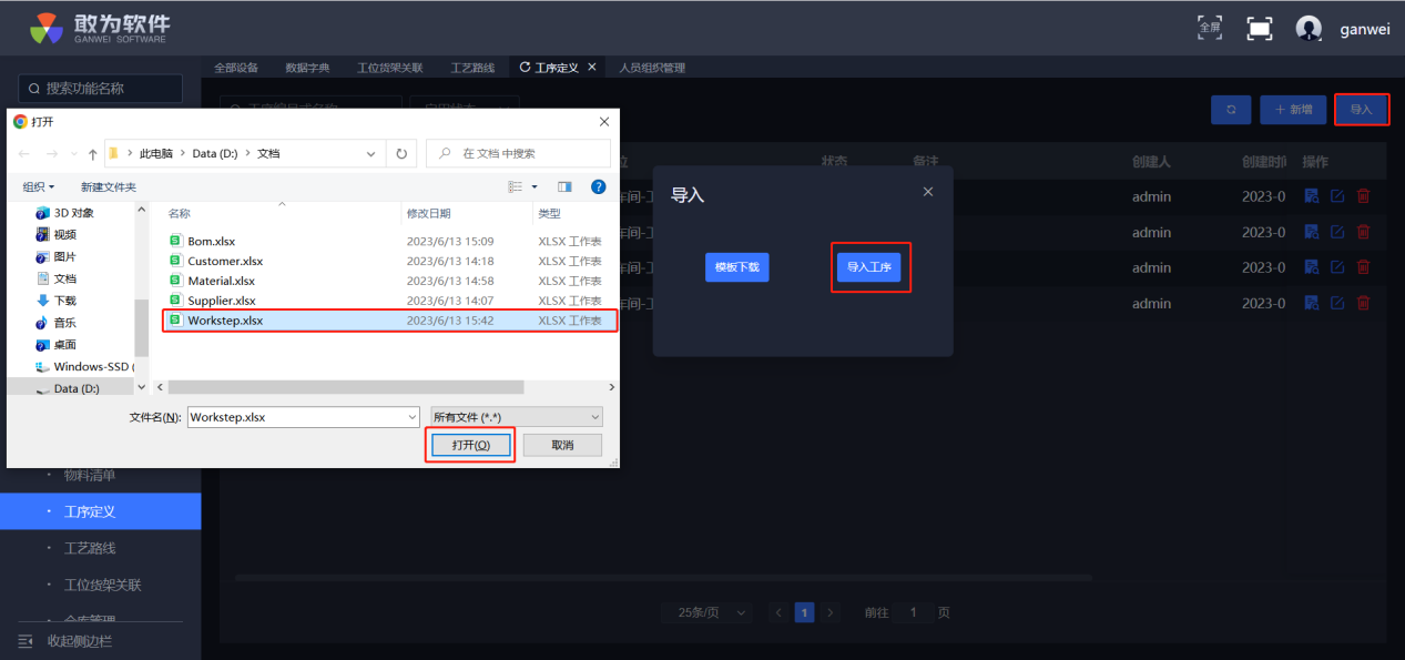 点击导入工序按钮,选择已修改好的文件。即可导入成功。