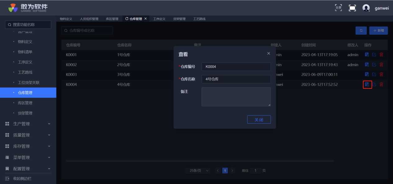 点击列表中的查看按钮,即可查看当前仓库的详情数据。