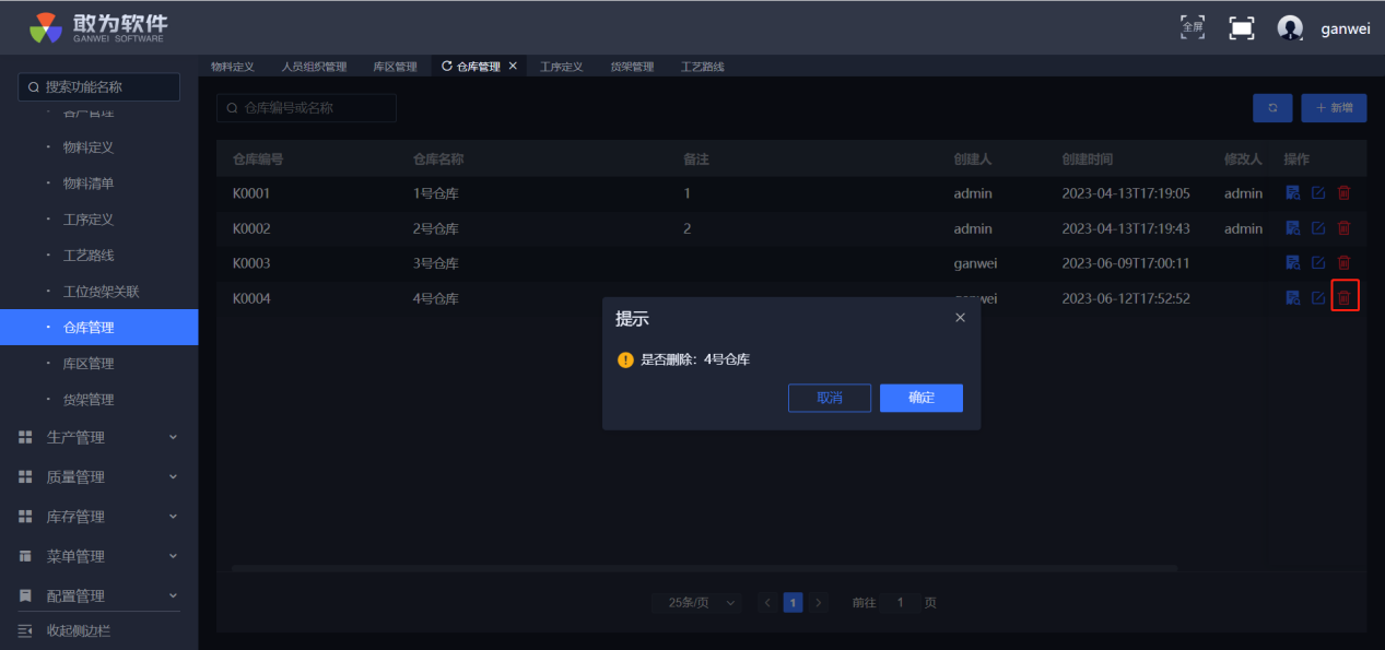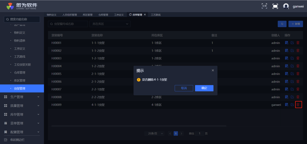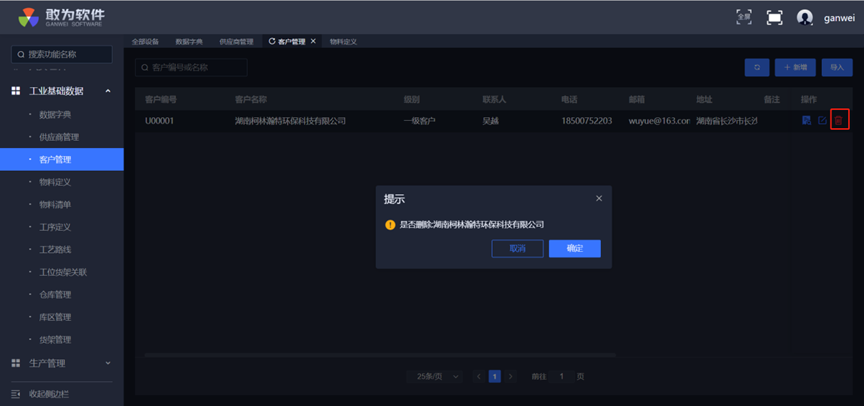 点击删除按钮。在弹出层中点击确定,即可删除当前记录