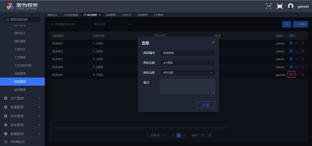 点击列表中的查看按钮,即可查看当前库区的详情数据。