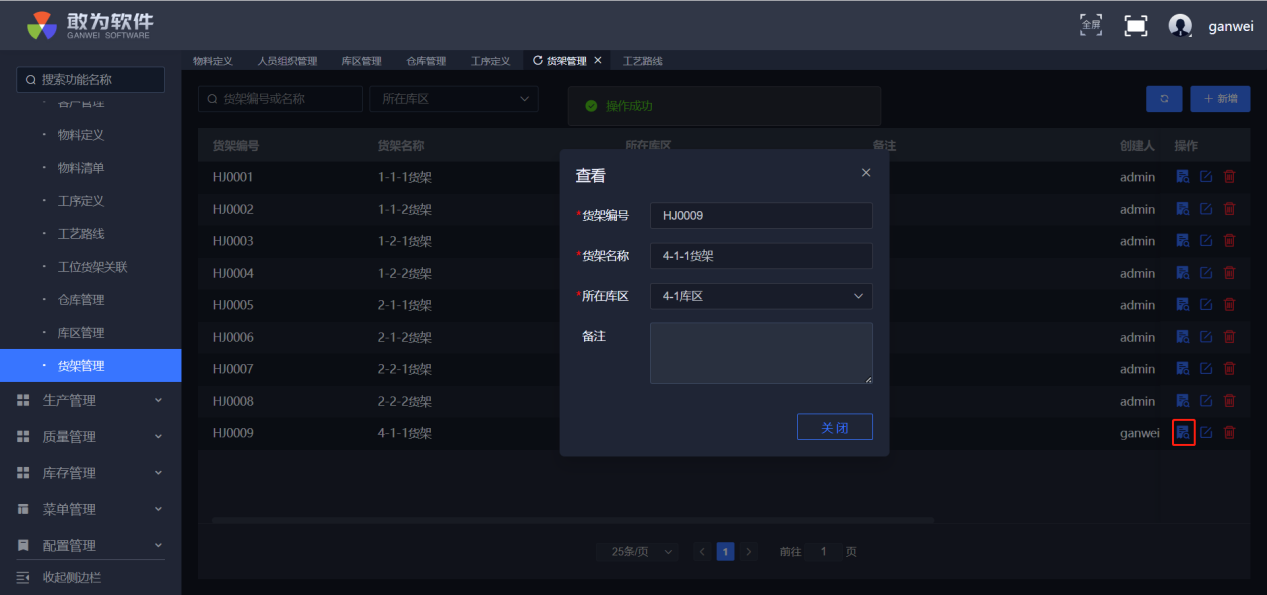 点击列表中的查看按钮,即可查看当前货架的详情数据。