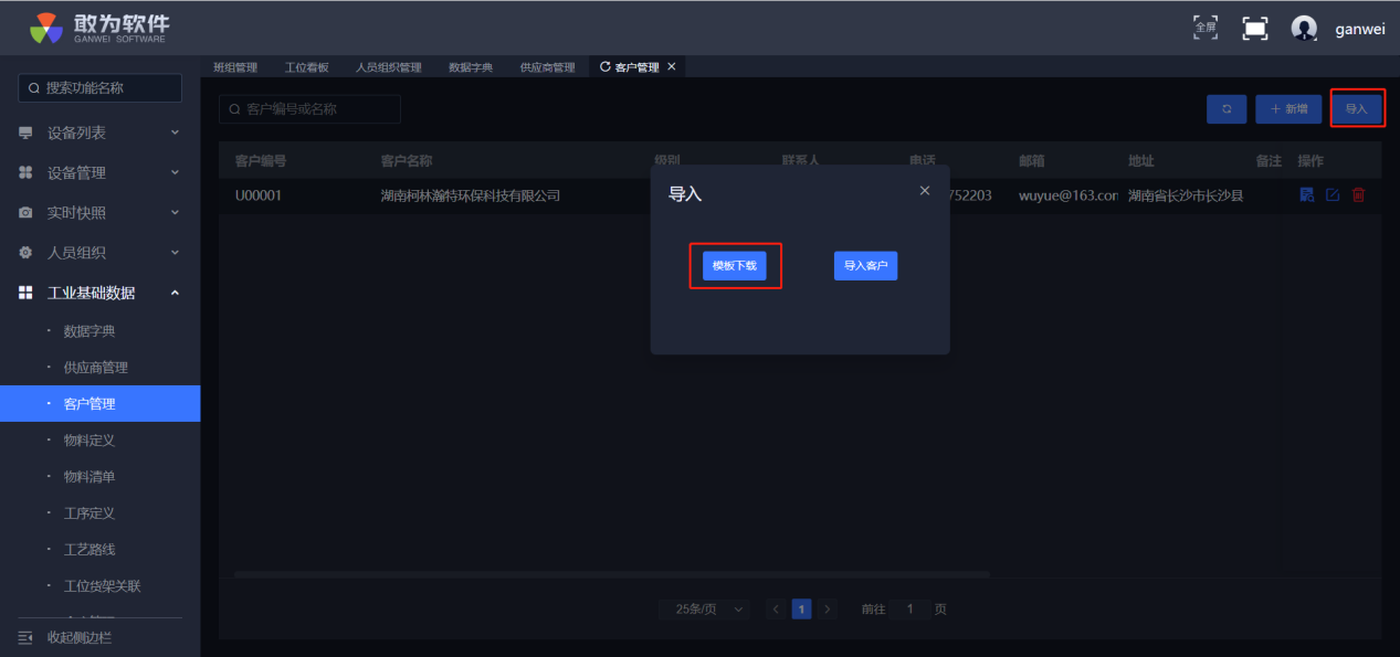 在弹出层点击下载模板。根据模板添加完供应商数据后。点击导入客户,选择中文件即可导入
