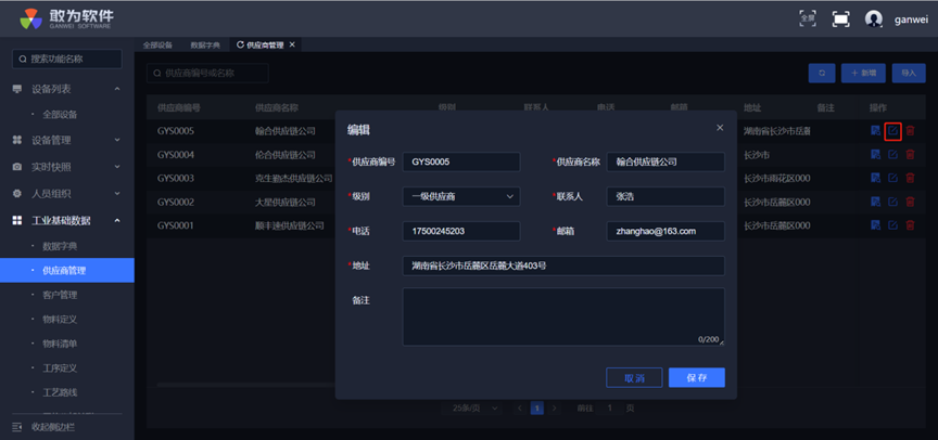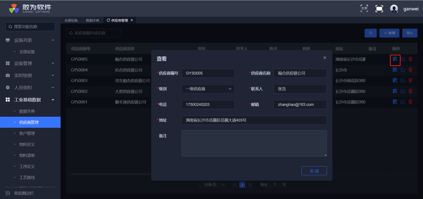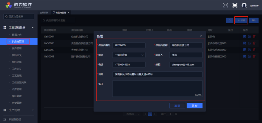 供货商是指可以为企业生产提供原材料、设备、工具及其他资源的企业。供应商管理主要是用来维护供应商的基础数据信息。