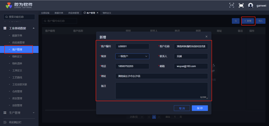 在弹出层中输入客户信息,点击保存。客户级别配置在客户等级