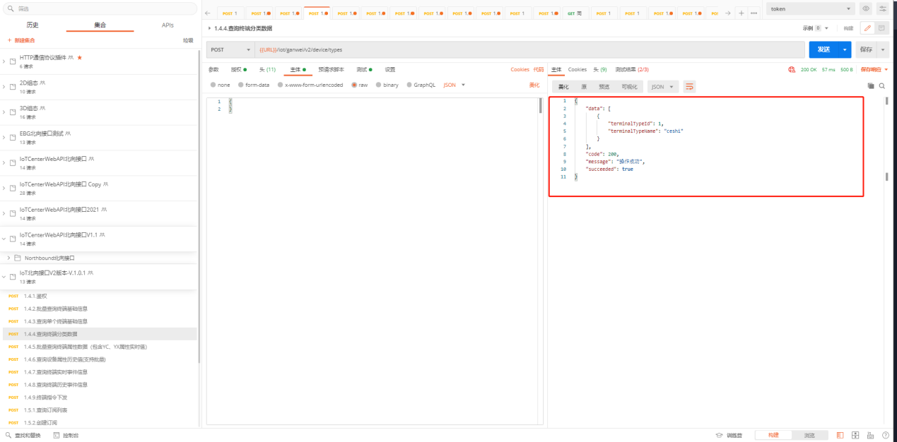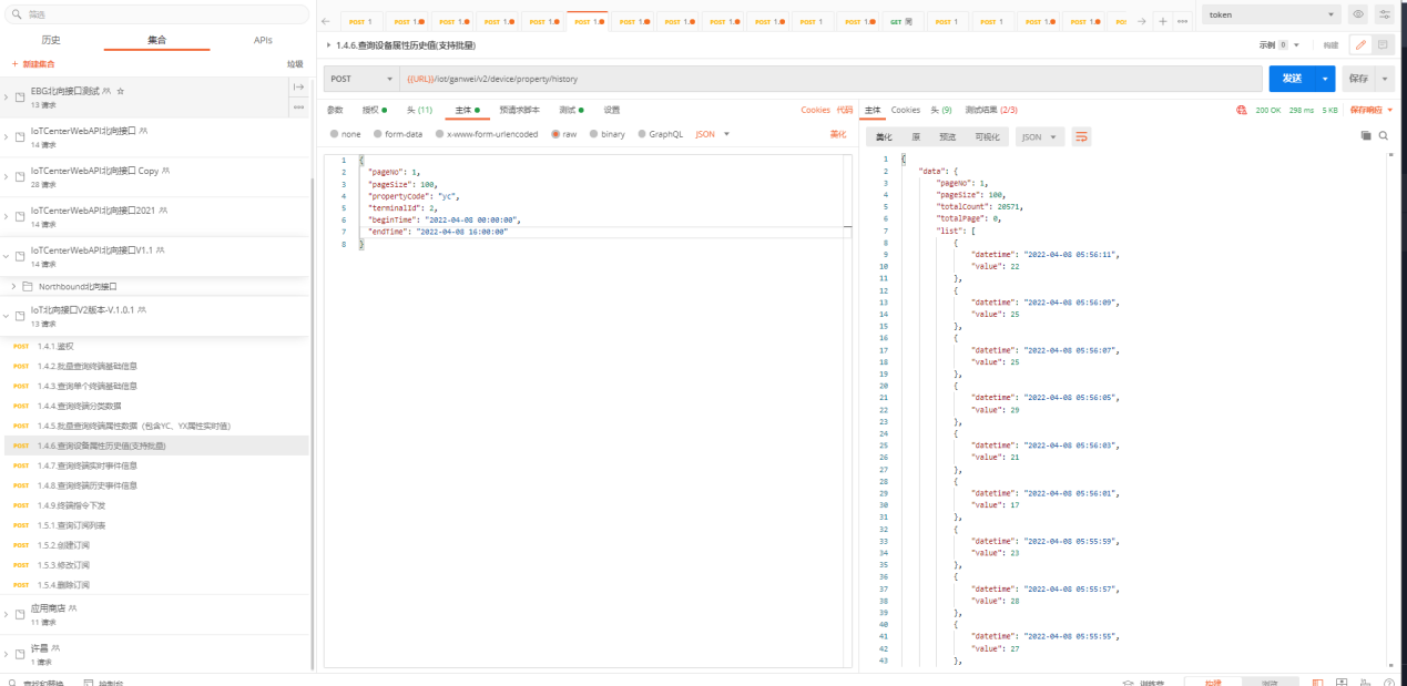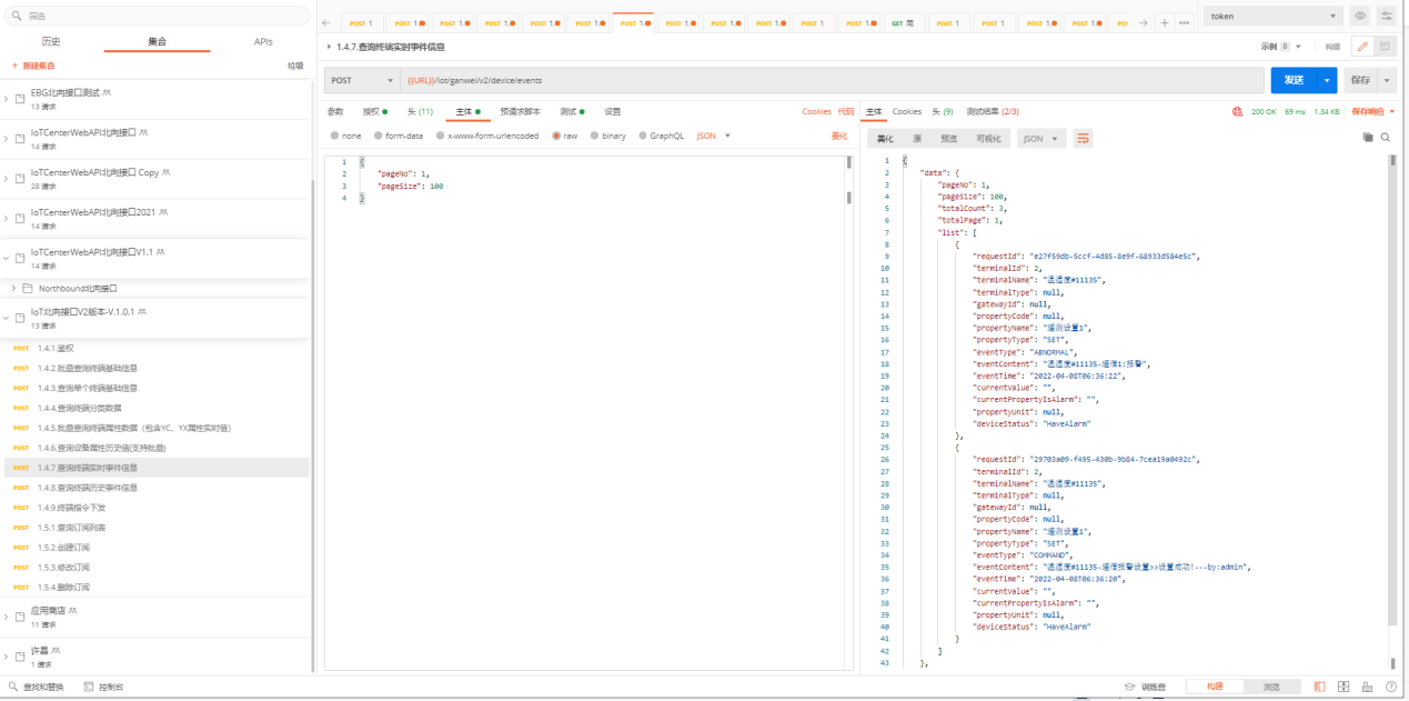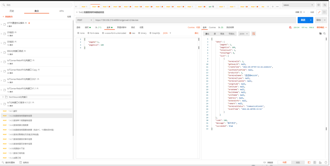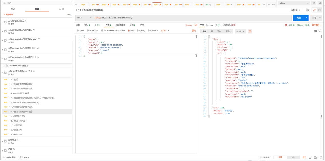 配置完成后就可以使用IoTCenter的https端口进行访问了。例如:https://127.0.0.1:44380/customapi/api/protocol/event/GetParkingInfoList。