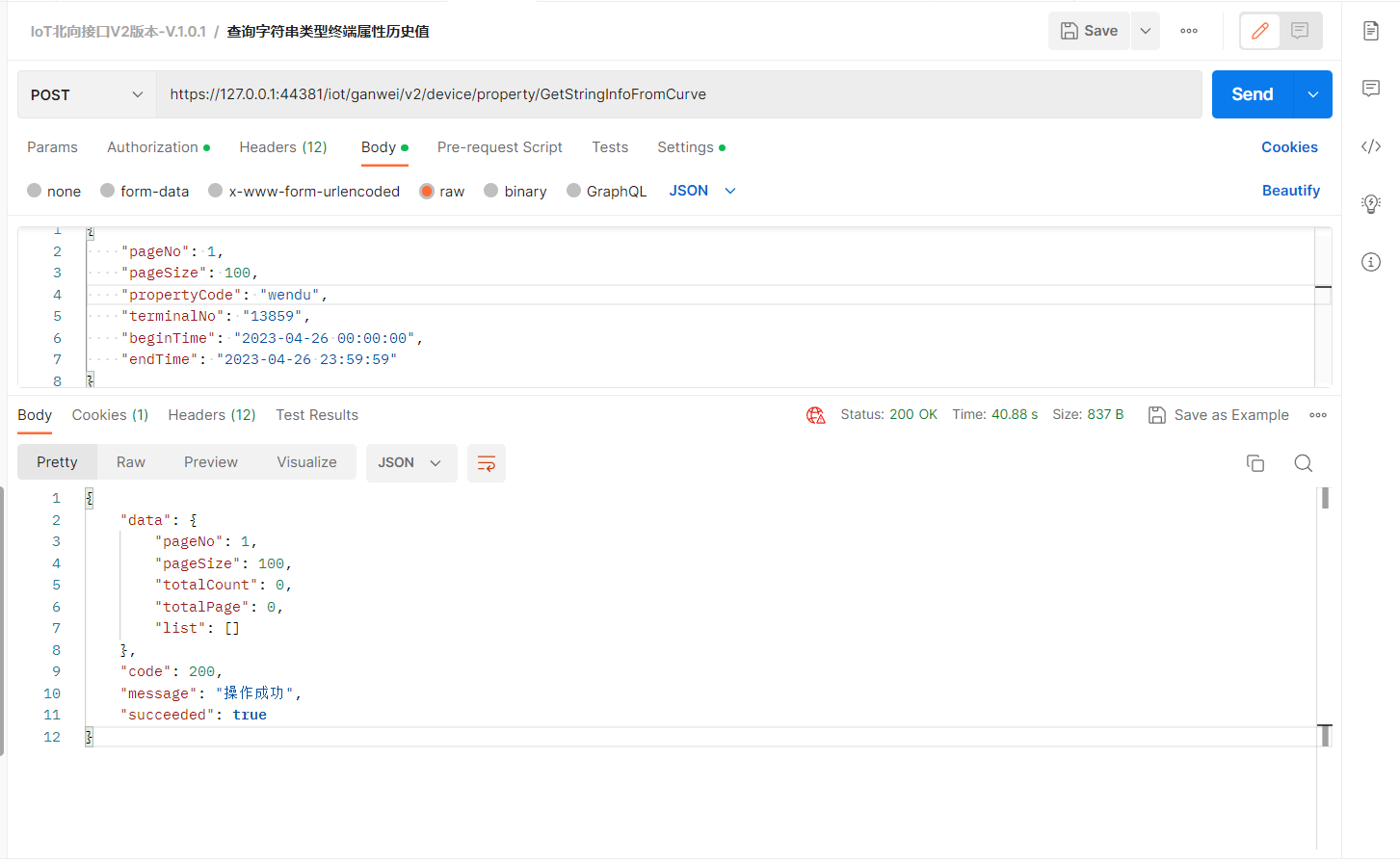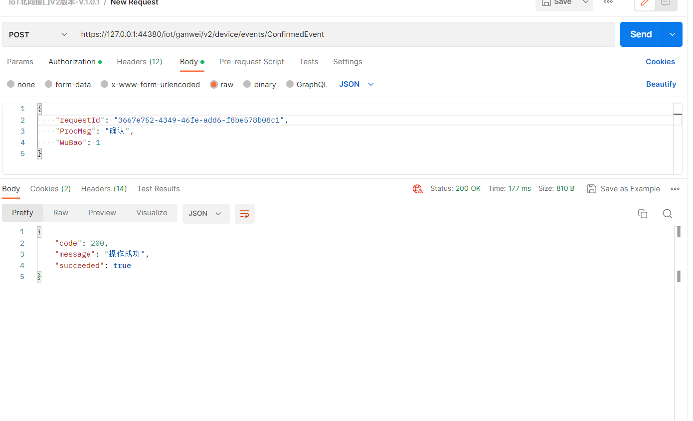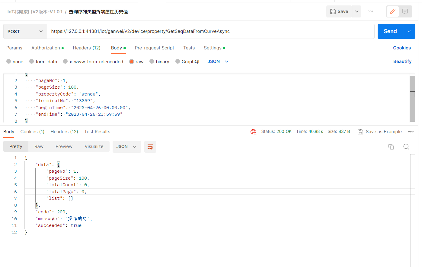 配置完成后就可以使用IoTCenter的https端口进行访问了。例如:https://127.0.0.1:44380/customapi/api/protocol/event/GetParkingInfoList。