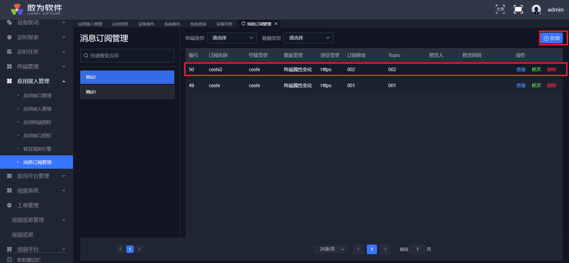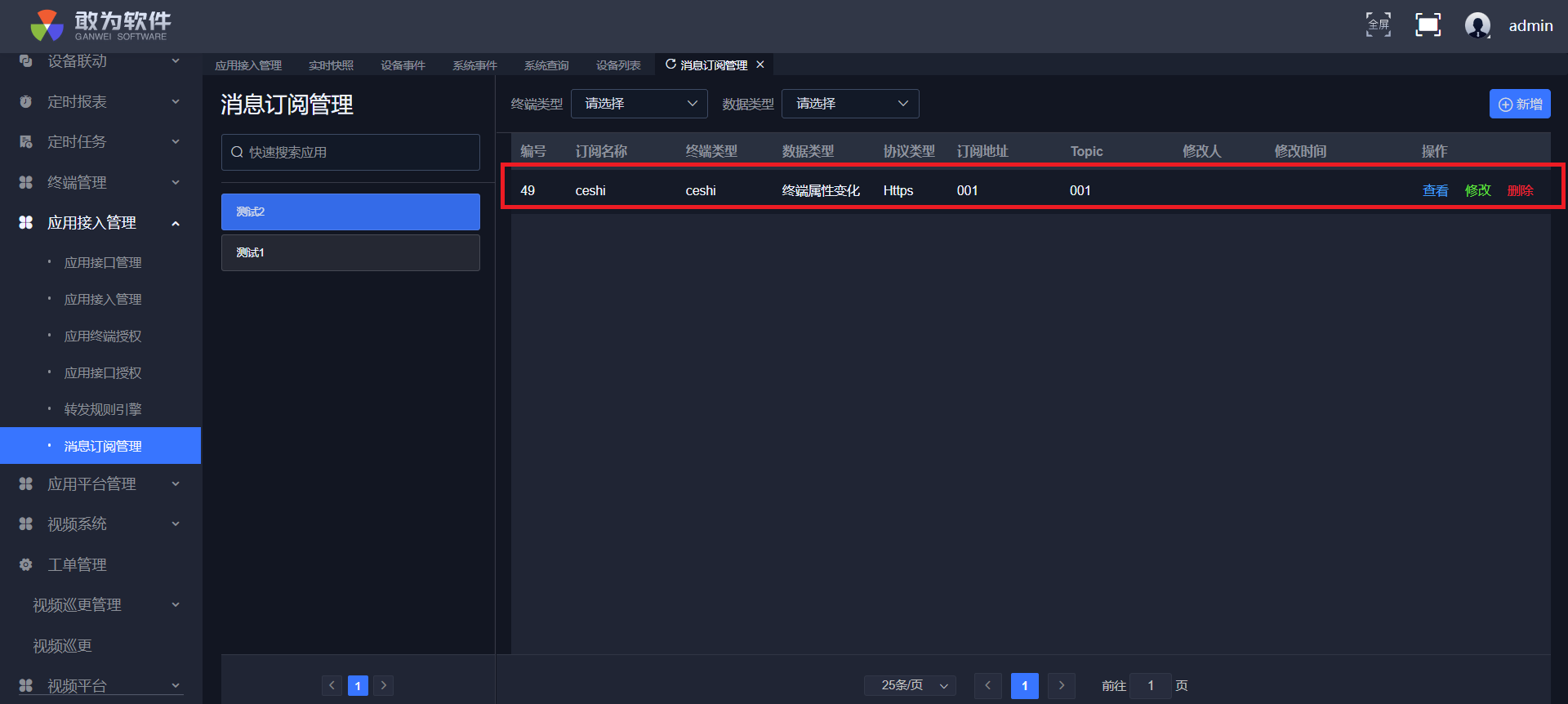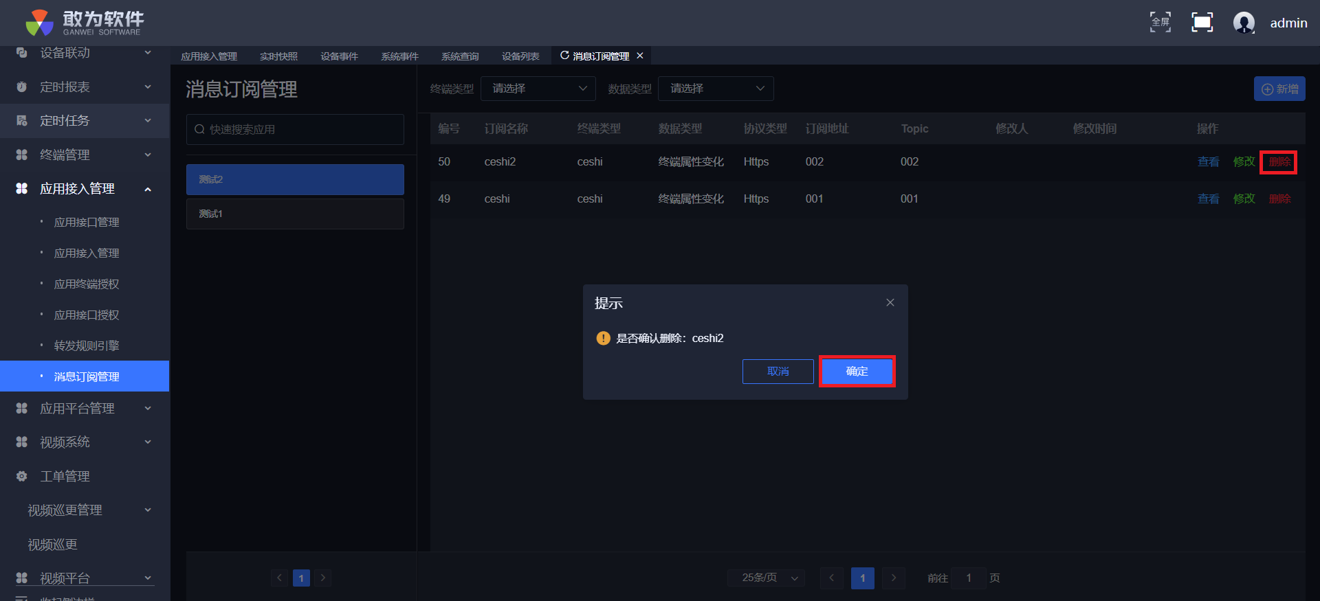 查询订阅列表得到subscriptionId,删除subscriptionId