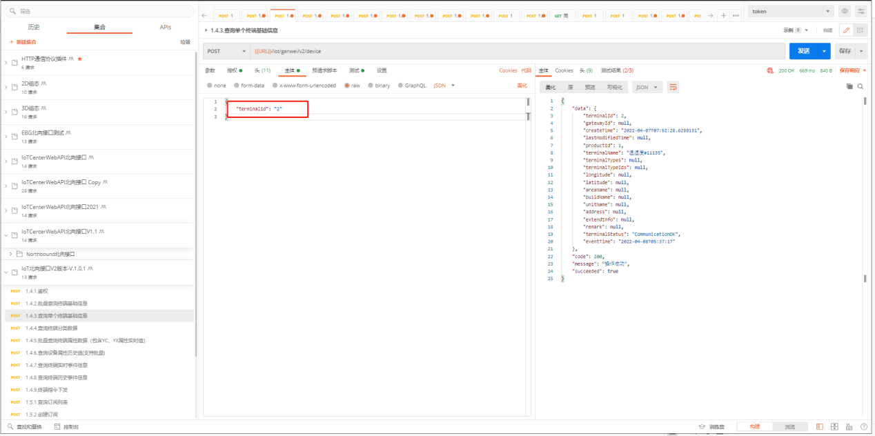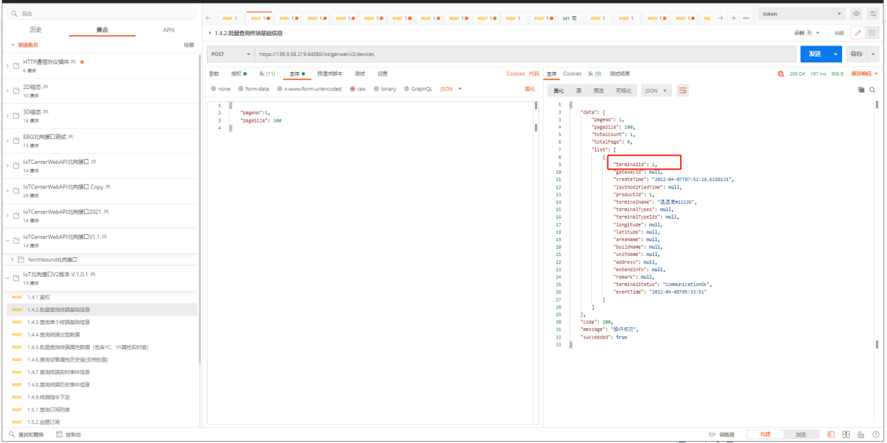先批量查询终端基础信息得到terminalId,按terminalId查询单个设备基础信息