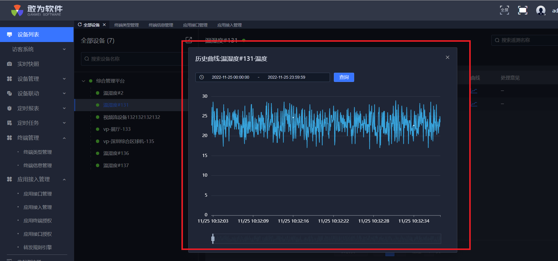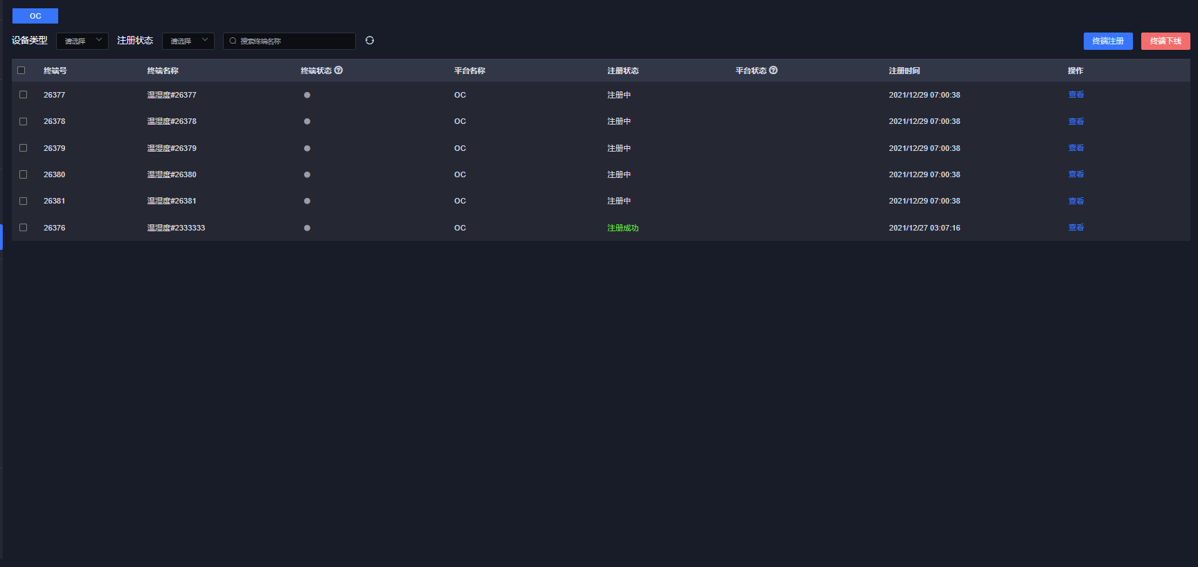 支持查看已注册到平台的终端列表。可以查询已注册,注册失败、下线等状态的数据,可以根据名称查询。