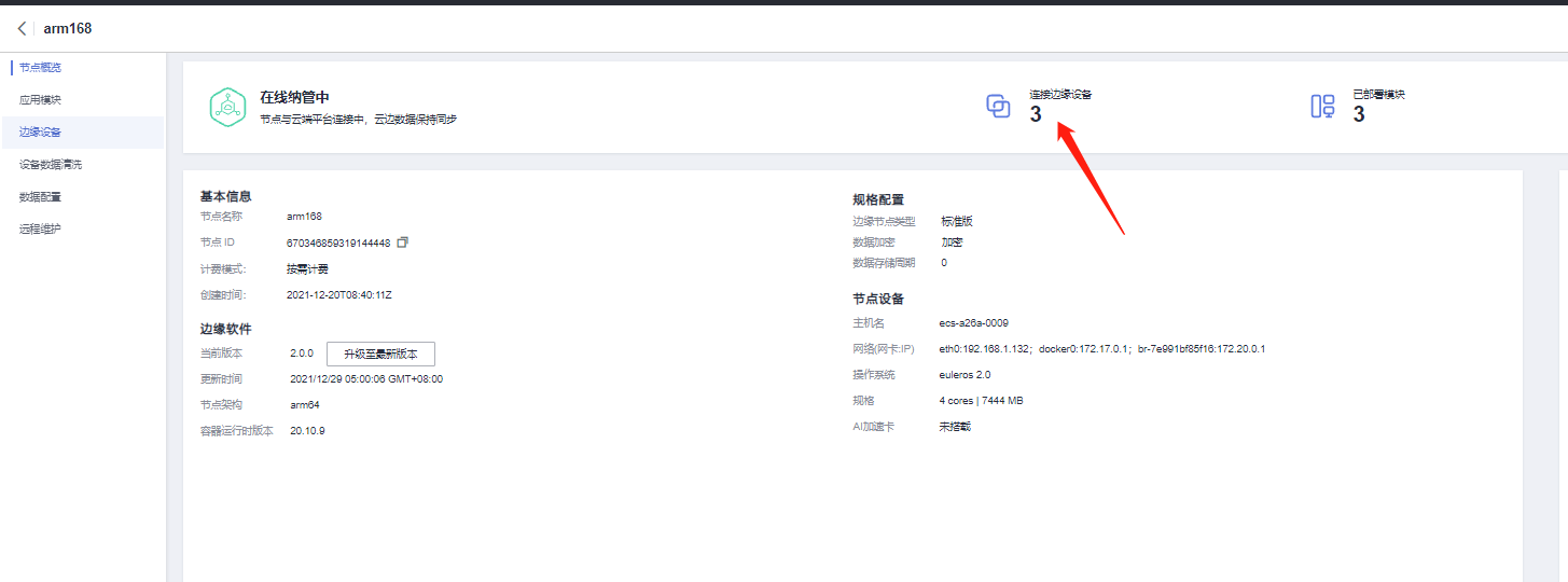 华为IoTEdge,即华为边缘网关,在IoTDA中体现为一个直连设备,敢为所有的终端都注册到该直连设备中。边缘网关部署成功后,会自动在IoTDA中创建一个直连设备。