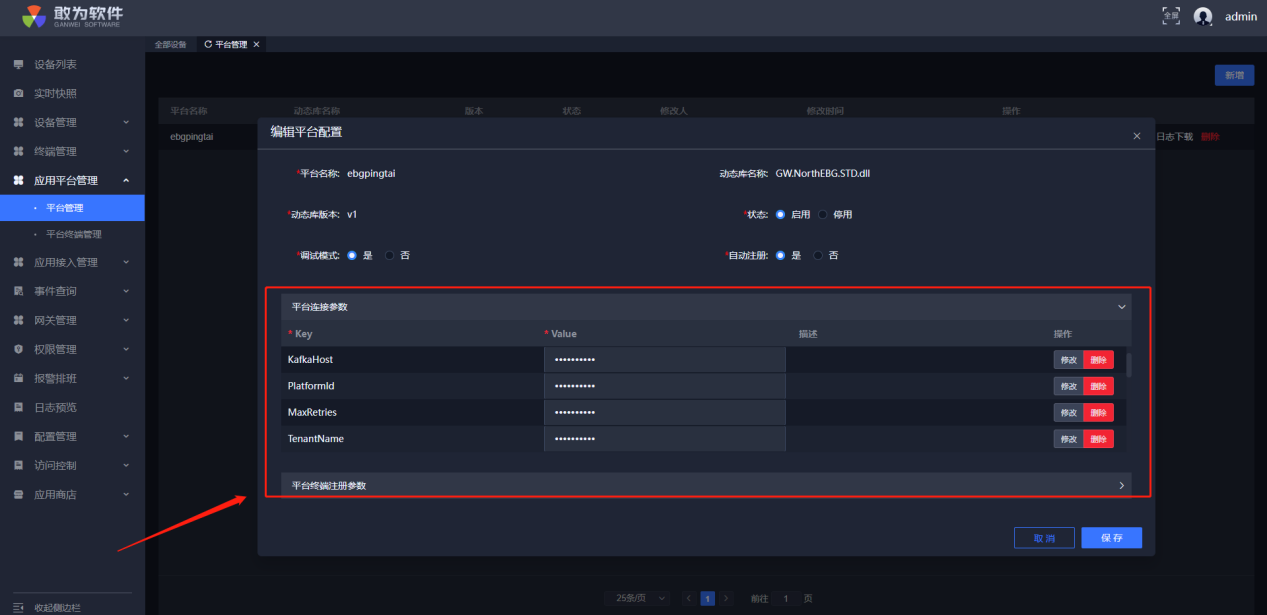 应用平台管理包括平台管理和平台终端管理量大功能。