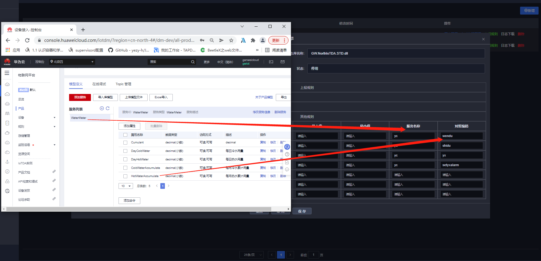 上报规则中“其他规则”,有一个服务名称,该名称就是“华为IoT平台创建产品”中提到的服务Id。对照属性为“华为产品”中的属性名称。