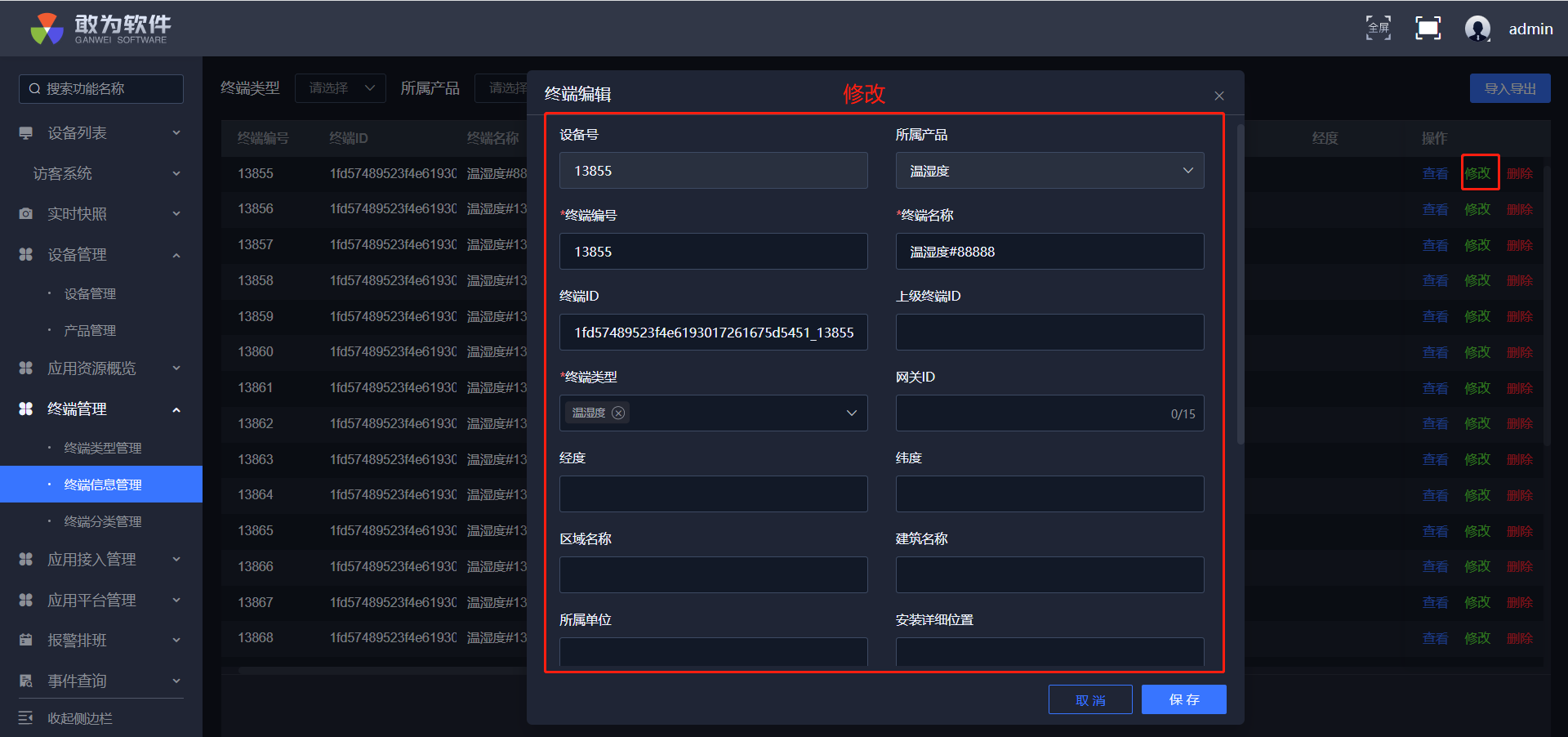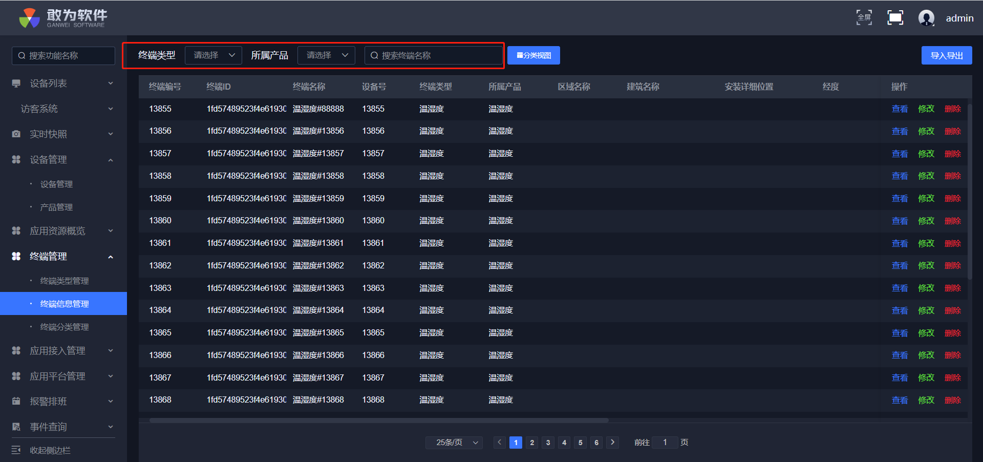 首先介绍终端管理,终端管理包含终端类型管理和终端信息管理两大功能。