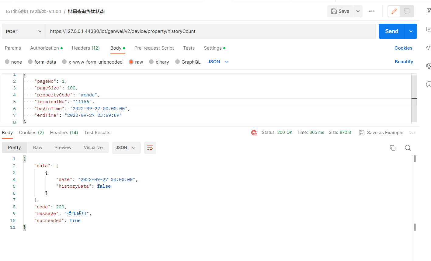 传入参数与查询终端历史值的参数相同,当前接口返回true 为当前日期存在历史值false为当前日期不存在历史值