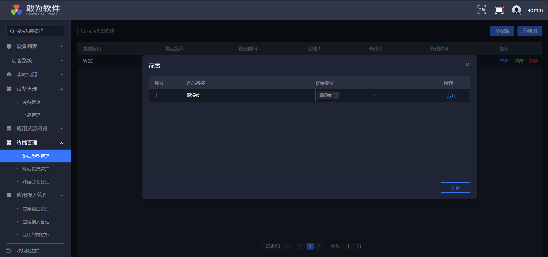 对终端信息进行归类,用户如果需要对终端信息划分多个类型进行分组,可以在这里维护终端类型。终端类型也支持配置产品的终端类型,当配置产品的终端类型后,后续同步的该产品的终端以及已同步的该产品的终端将默认配置该终端类型。该功能主要维护终端类型字典信息,在北向功能中,实施人员必须维护好终端类型数据。