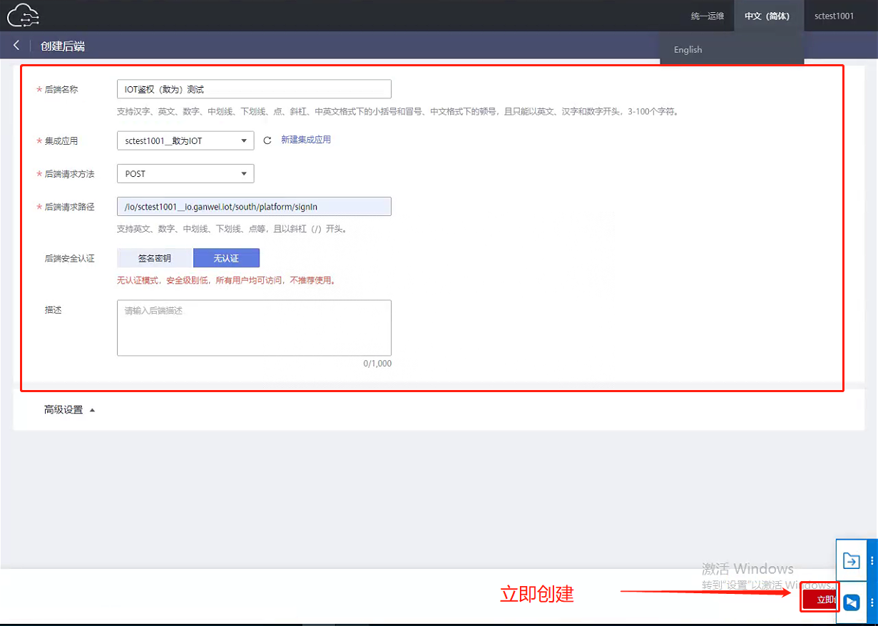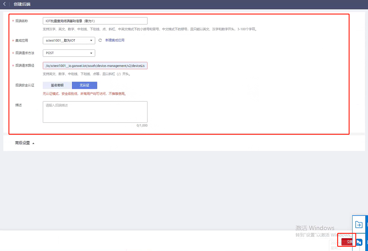 - 后端名称:IOT鉴权 可自定义命名