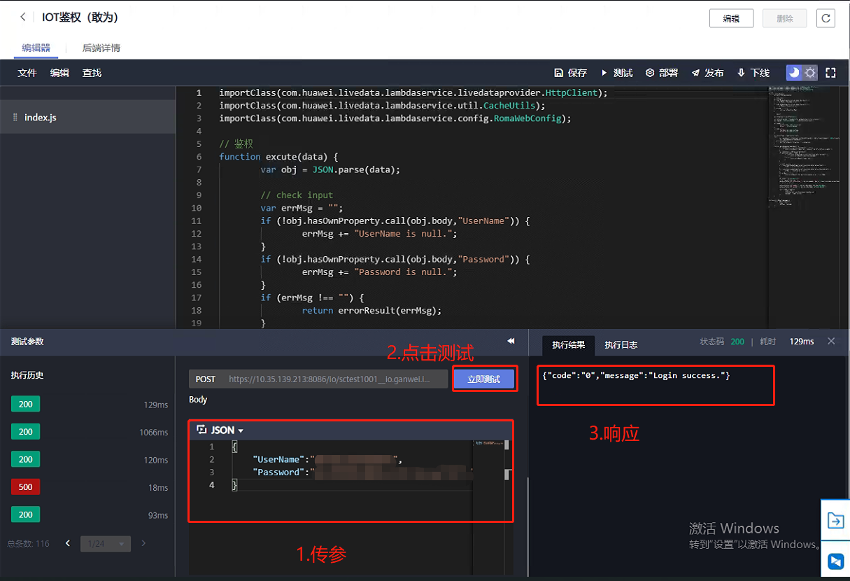 - 后端请求路径(可自定义): /io/sctest1001__io.ganwei.iot/south/device-management/v2/south/platform/signIn