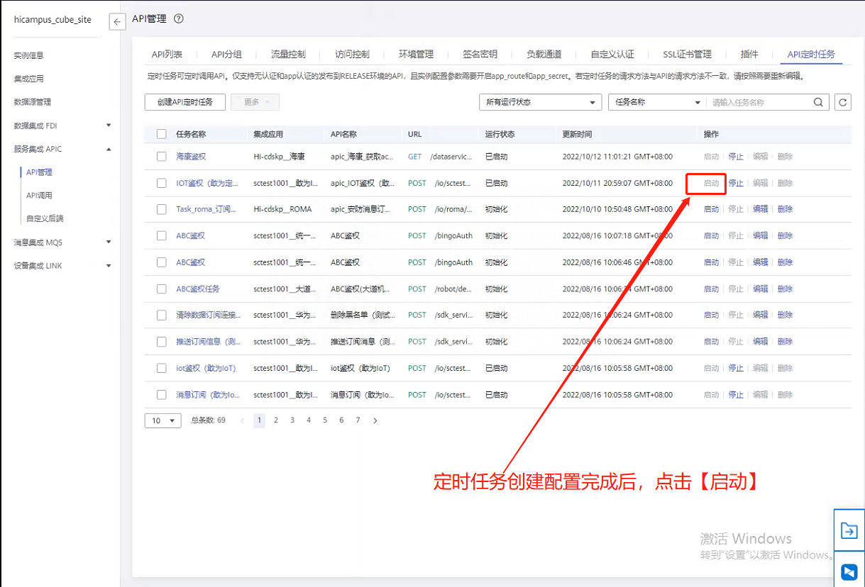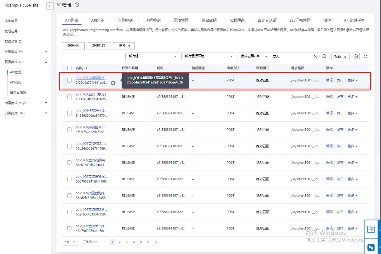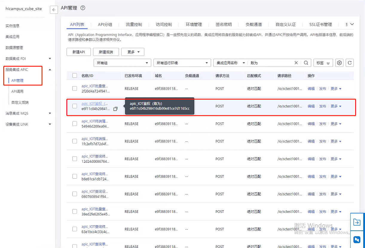 第七步:返回服务集成APIC,点击【API管理】,验证接口是否发布成功。(发布成功后API管理中会生成对应的接口。)