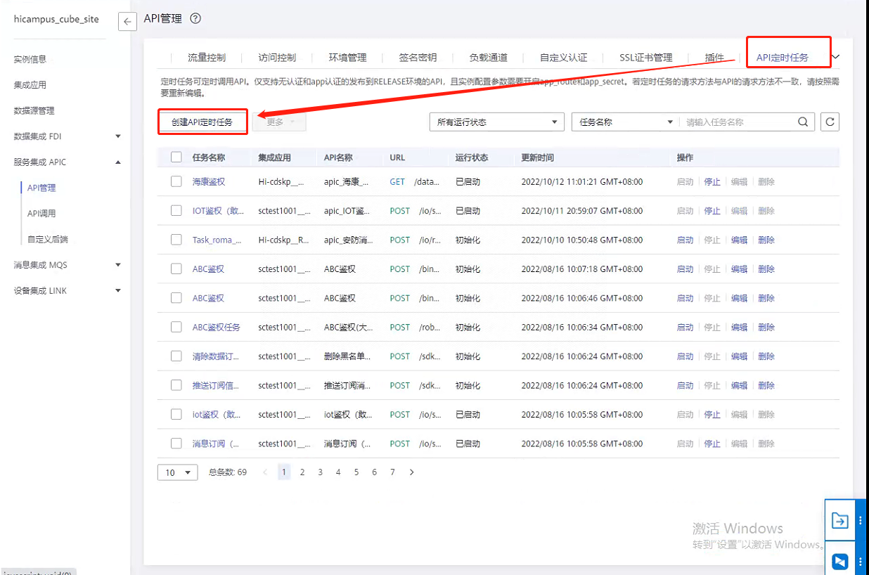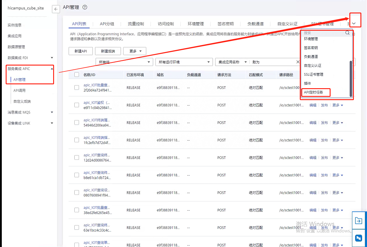 第六步:返回服务集成APIC,点击【API管理】,验证接口是否发布成功。(发布成功后API管理中会生成对应的接口。)