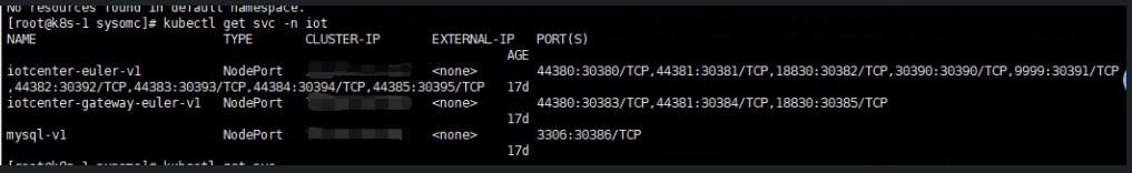 kubectl get svc -n iot