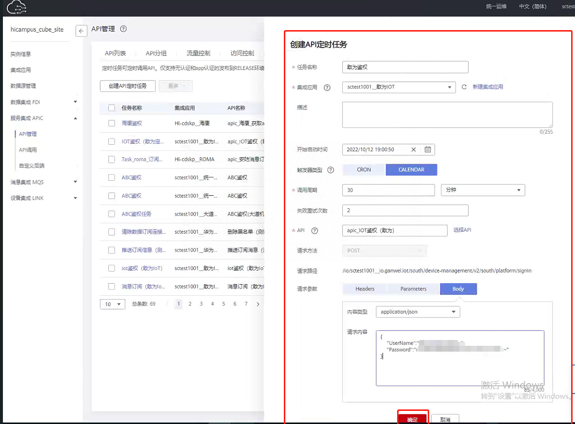 - 所属集成应用:敢为应用(sctest1001_敢为IOT)