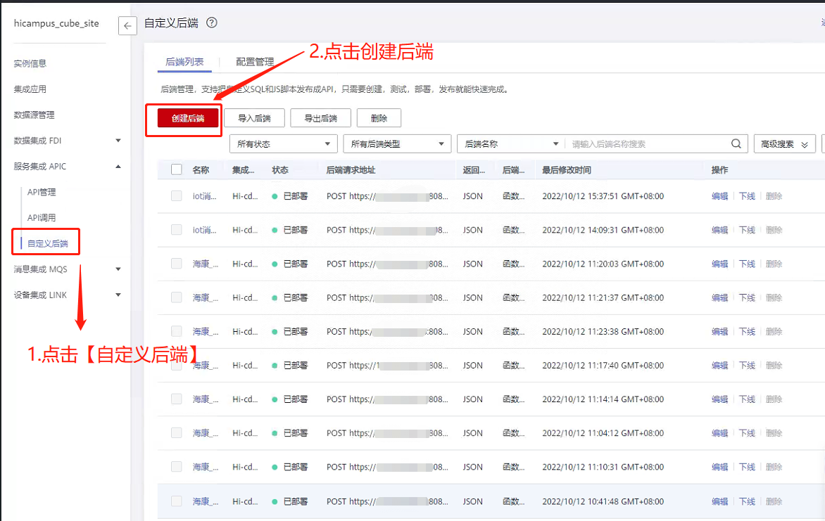第一步:点击【创建后端】