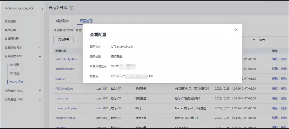 - 配置名称:IoTCenterApiAddr