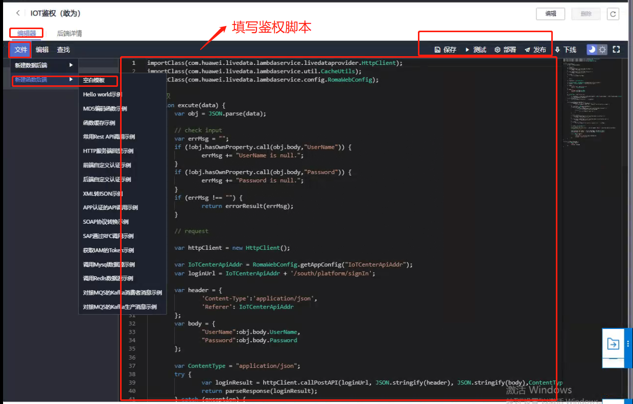 在【空白模板】处填写好鉴权脚本。
