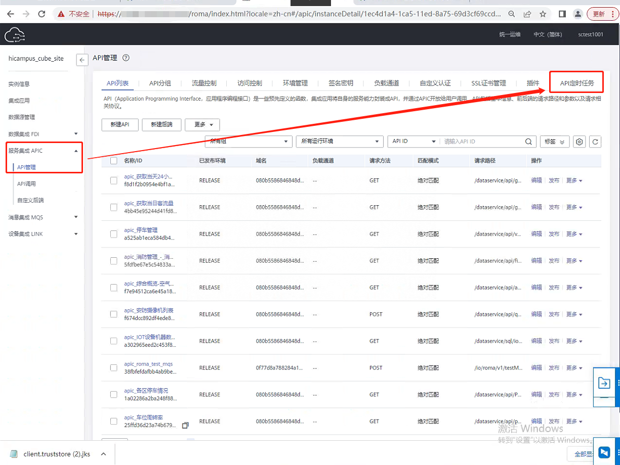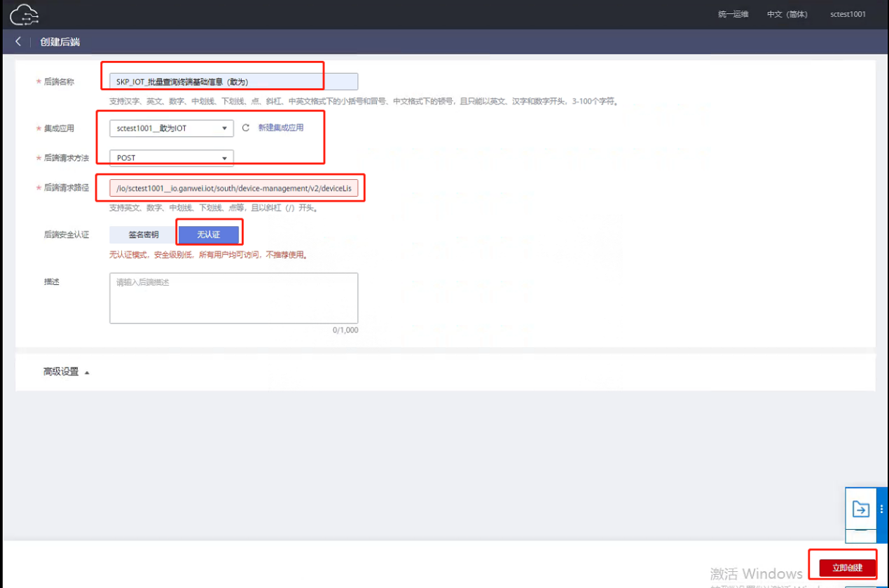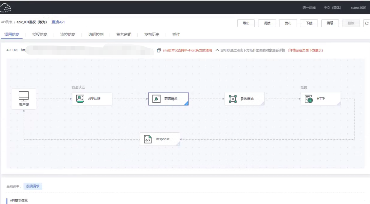 IoTCenter部署在华为的FusionCube一体机中,一般情况下EBG版本的IoTCenter会内置EBG插件和接口调用所用到的鉴权用户名,这时候可以直接在ROMA中测试是否能正常调用到IoTCenter的接口。