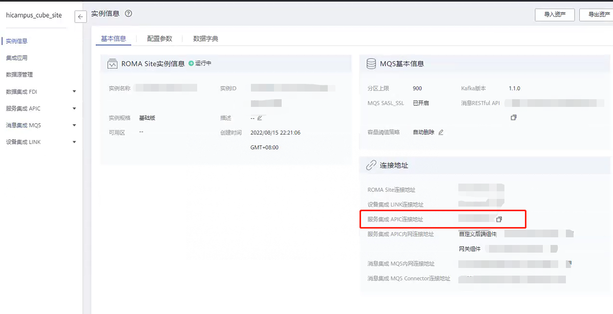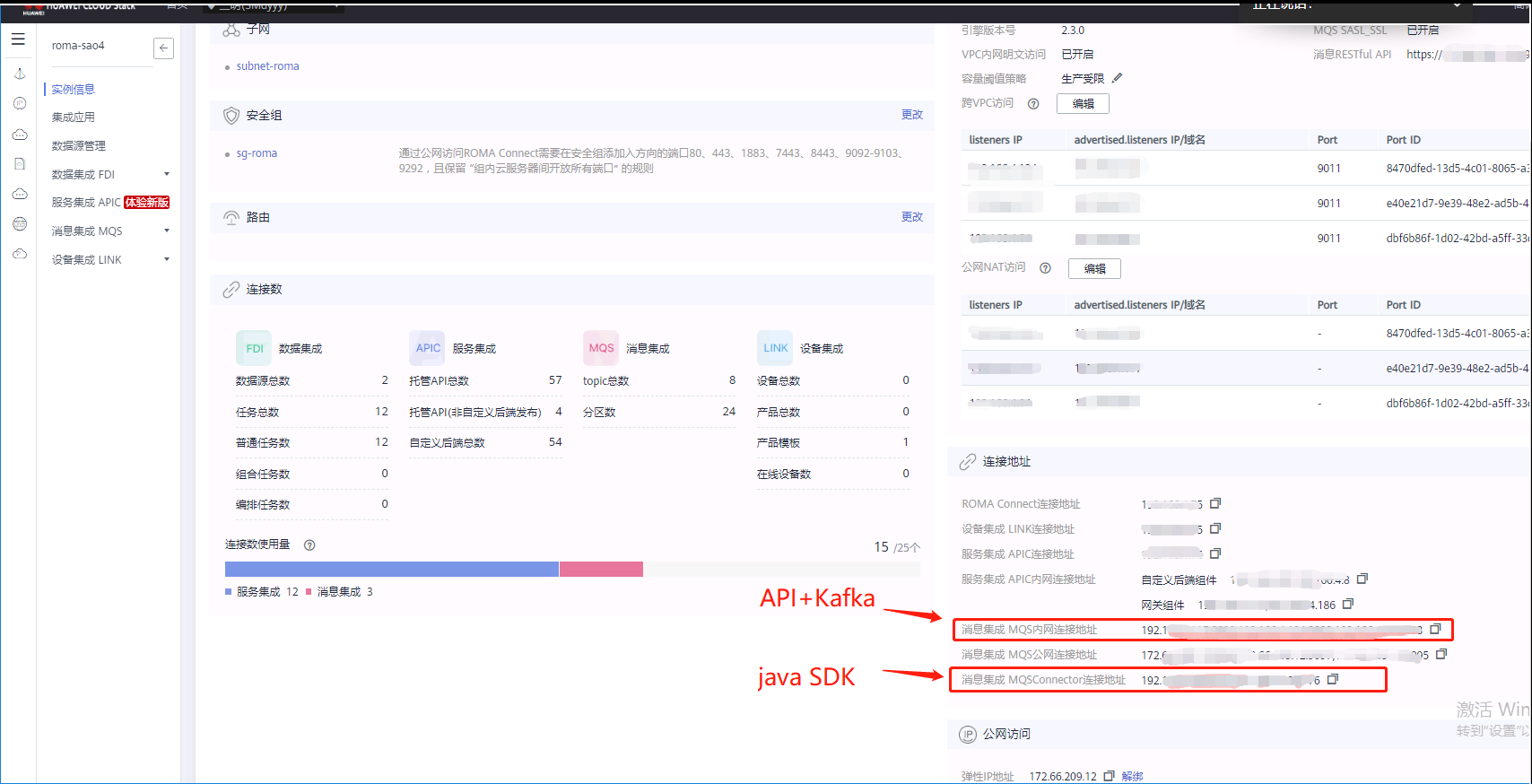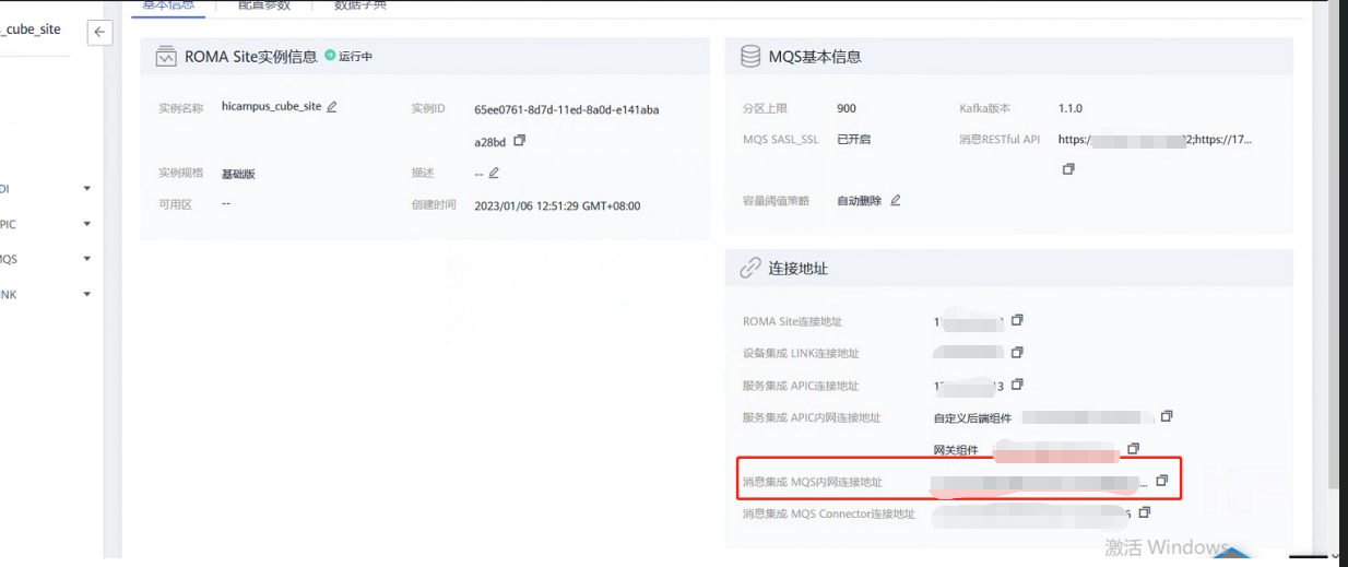 图中“消息集成MQS内网连接地址”为直接对接ROMA的KAFKA的连接地址,消息集成MQS Connector连接地址为通过iot_jar的java包对接ROMASDK实现上报的地址。