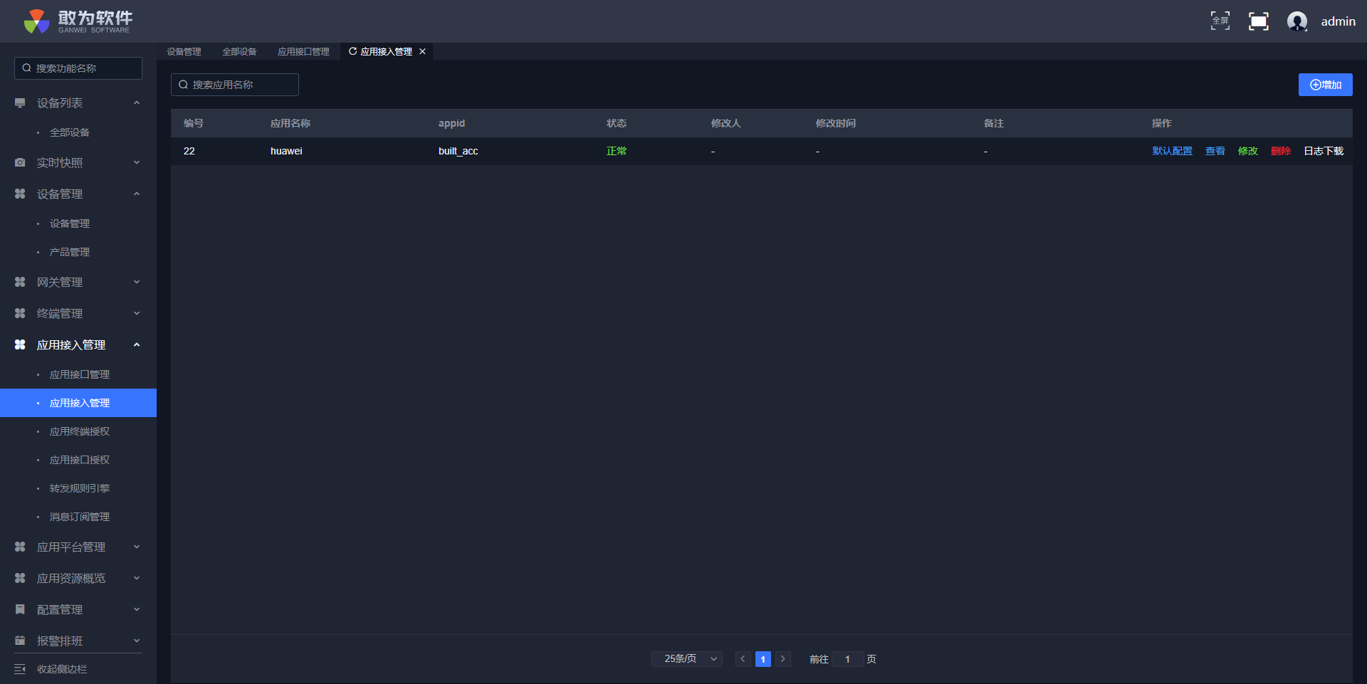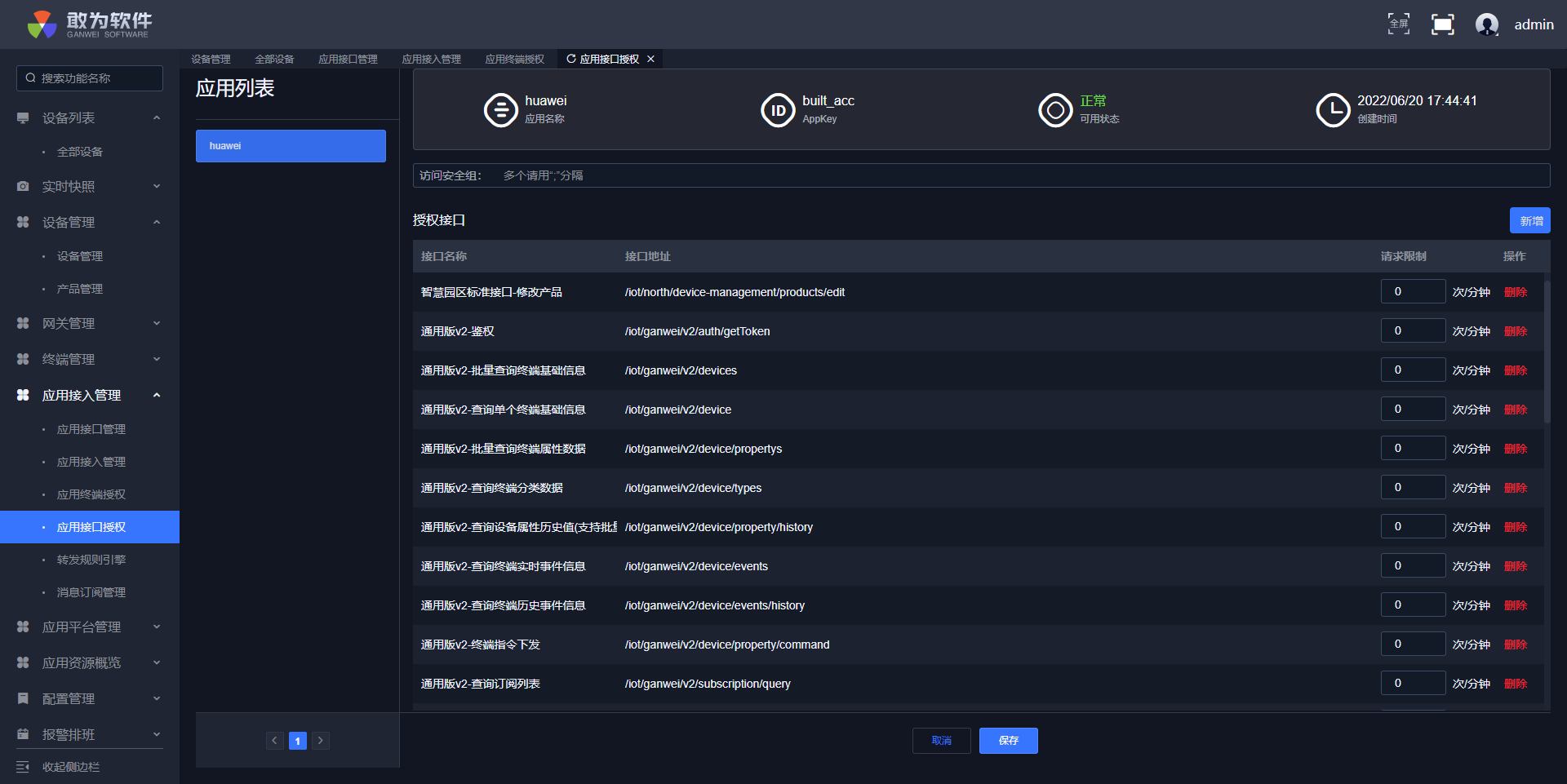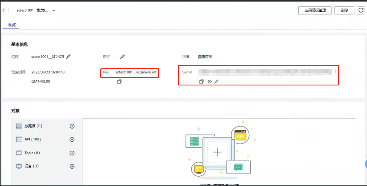 ROMA平台应用找到sctest1001__敢为IOT 应用点击进入