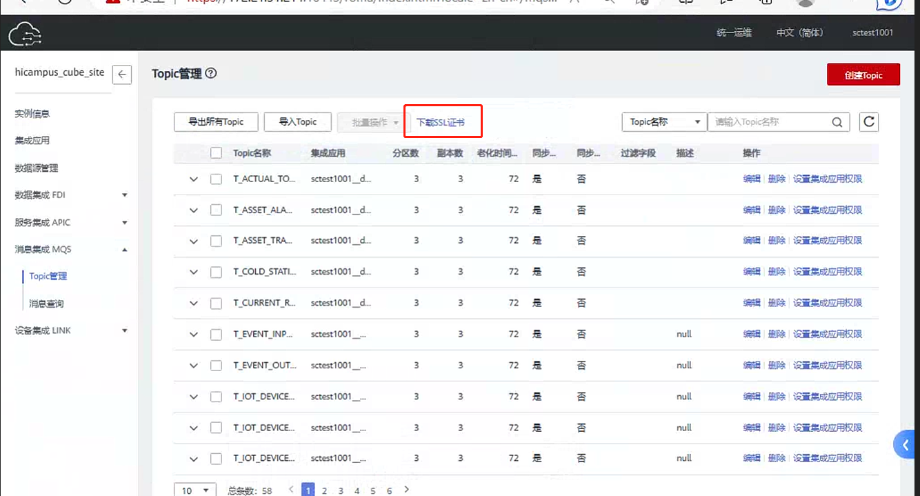 | Topic名称 | 消息主题Topic | 租户标识 |