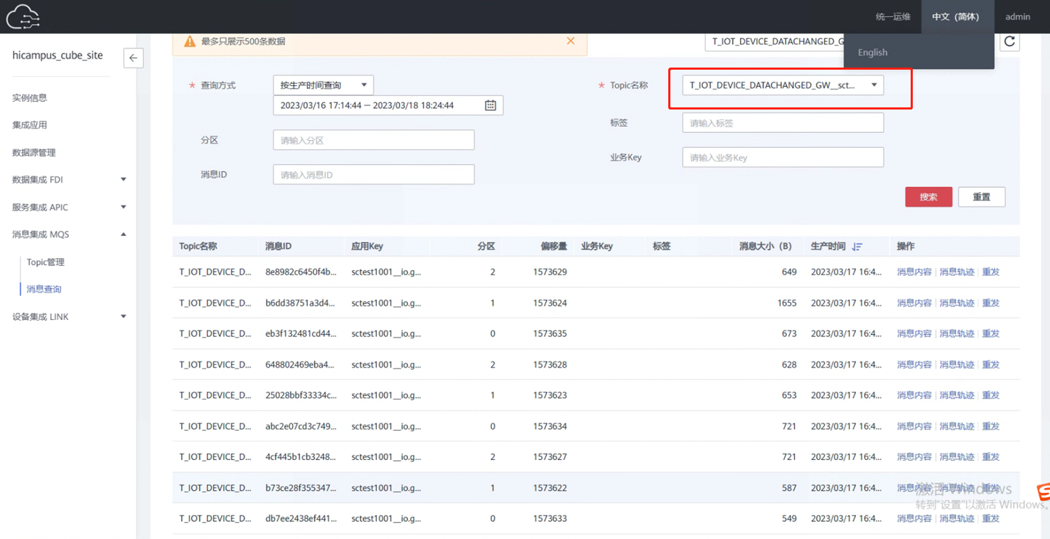比如查询设备注册消息,就选择终端属性变化通知的消息主题