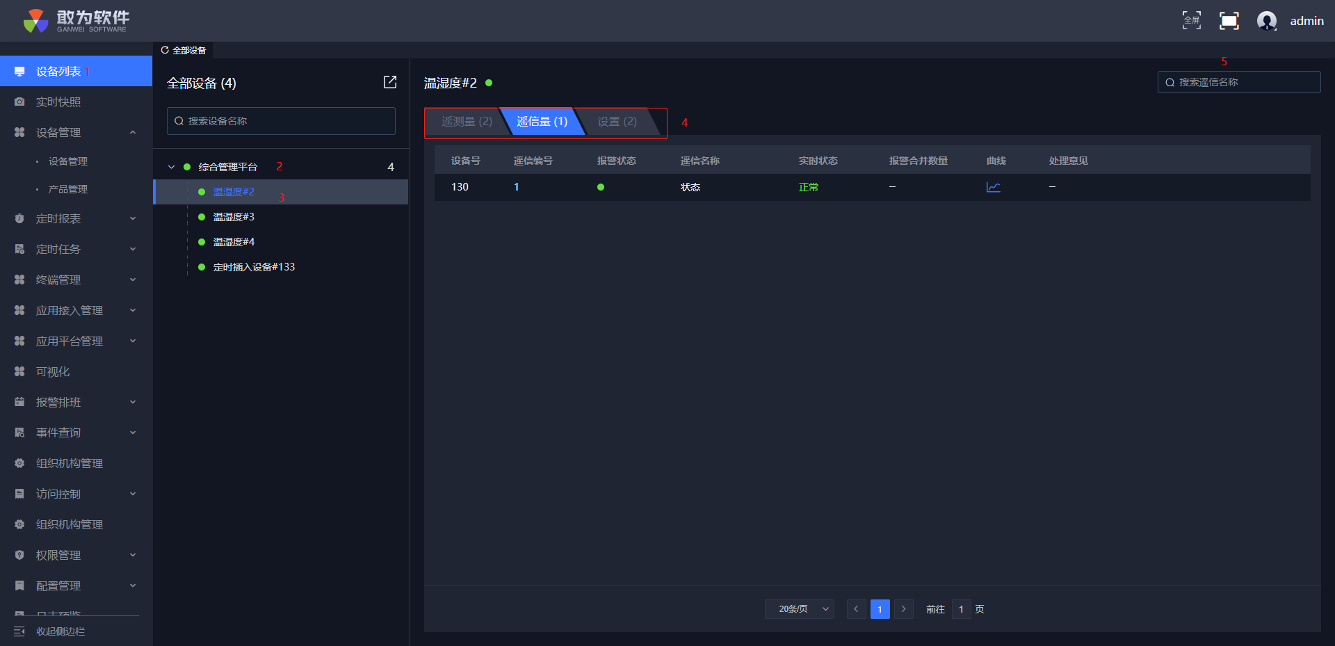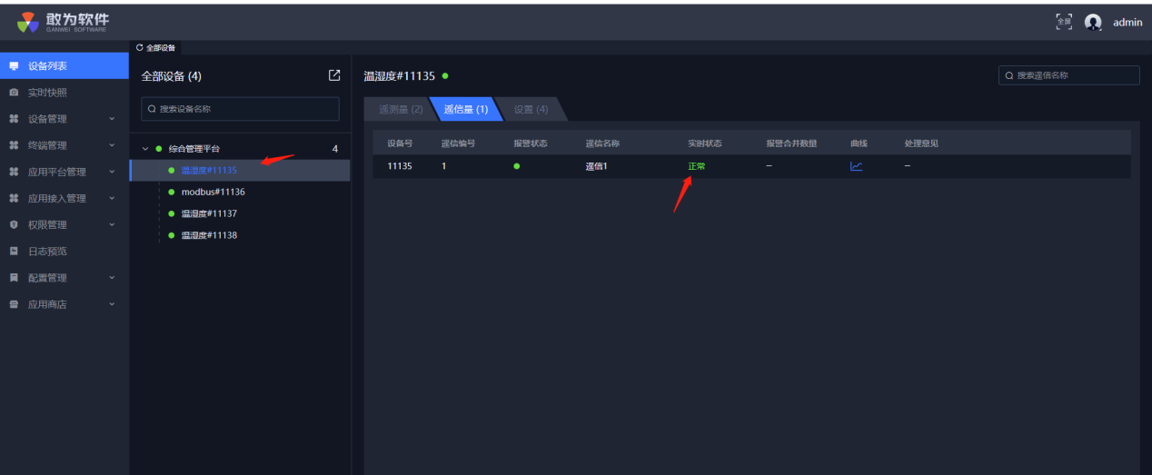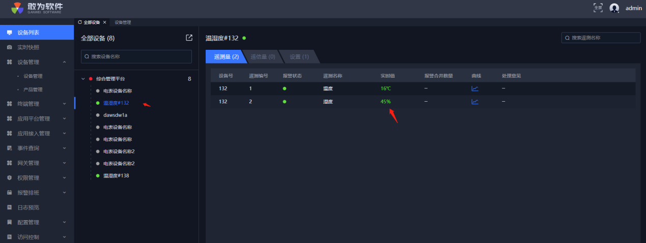 | 1 | 支持显示设备状态、测点实时数据及状态 | 支持查看平台接入设备的状态:绿色为正常,红色为告警,蓝色为初始化,灰色为离线,黄色为备机状态(不呈现数据)。 支持展示设备遥测点和遥信点的实时数据及状态。 支持当设备告警时,会提示处理意见。 |