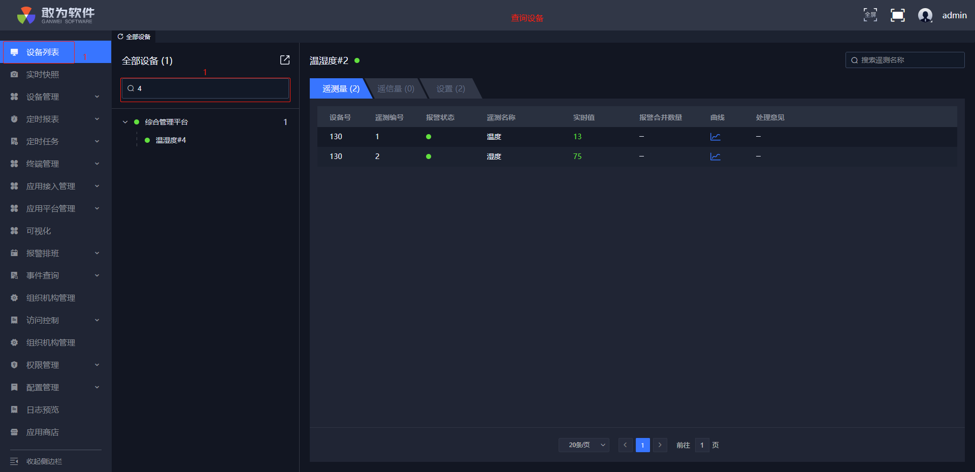 | 7 | 支持查询设备、测点和设置项 | 支持通过设备、测点或设置项的名称的关键字进行查询。 |