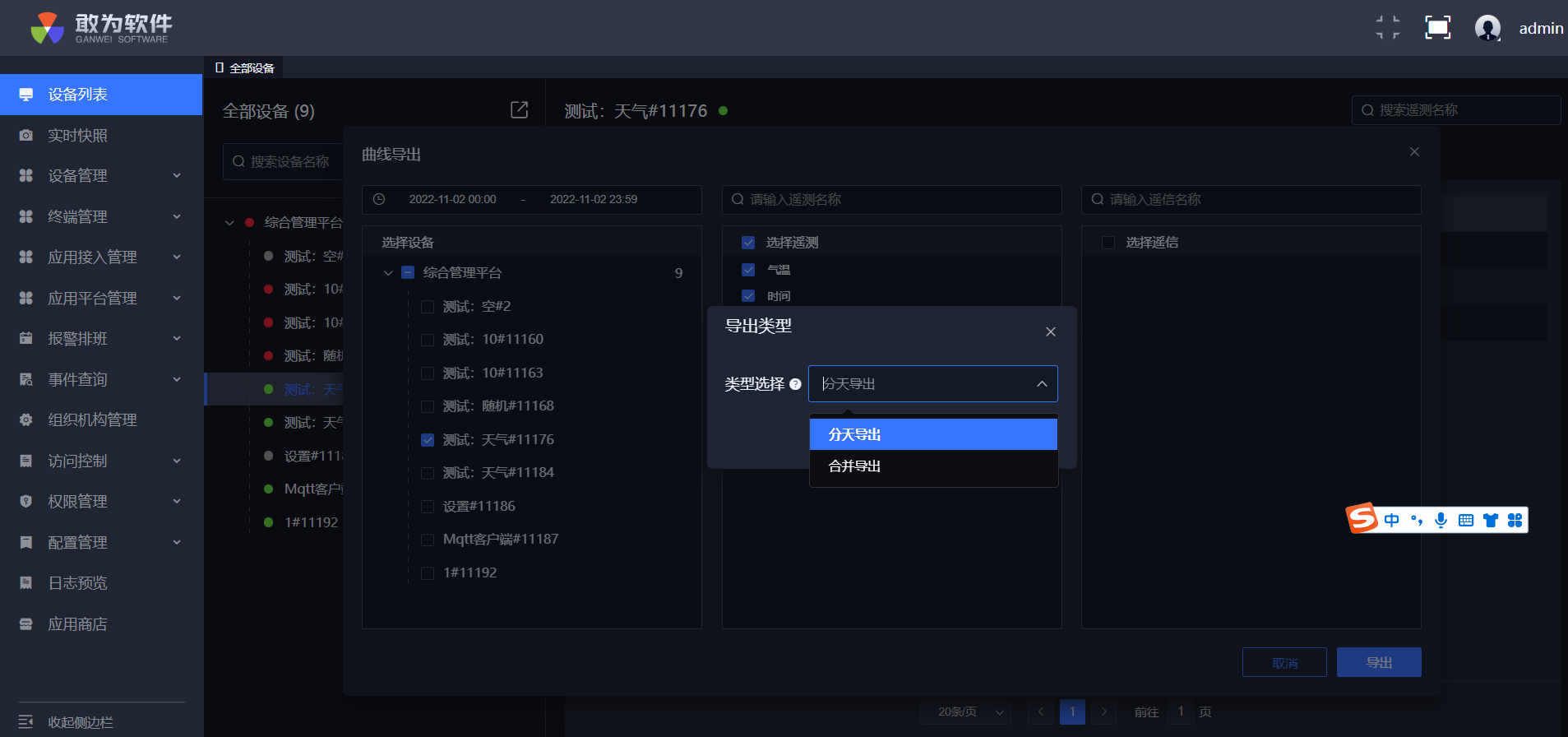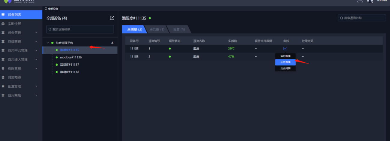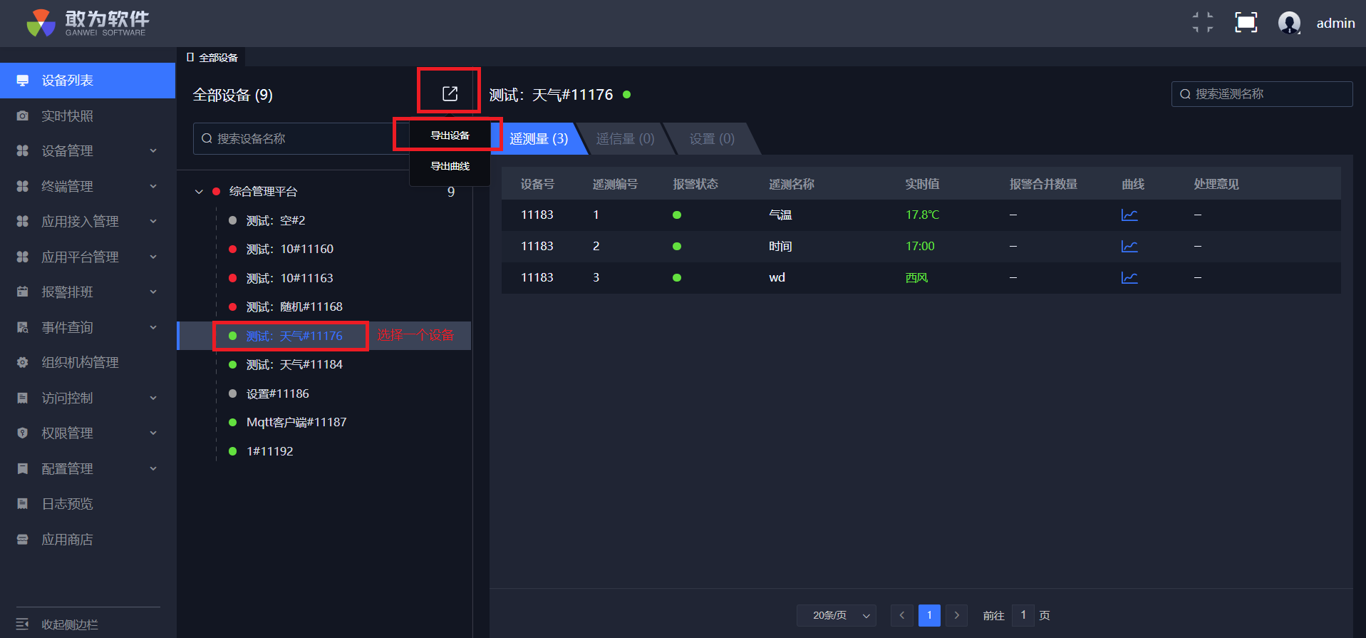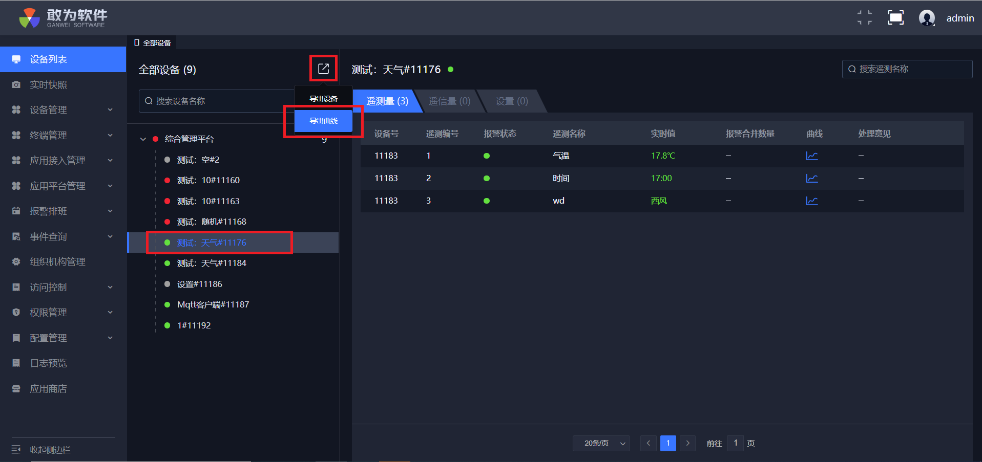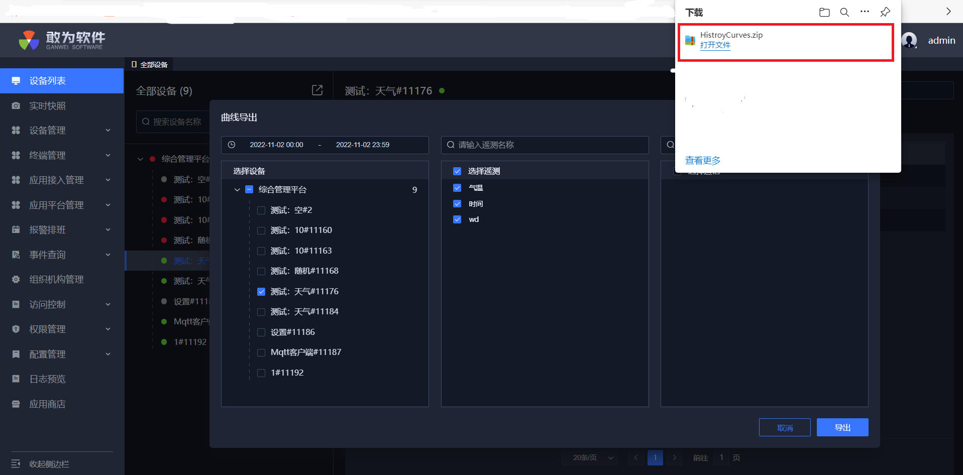 | 5 | 支持导出历史曲线 | 支持按照时间导出单个或多个设备的历史数据,以表格方式呈现。 |
