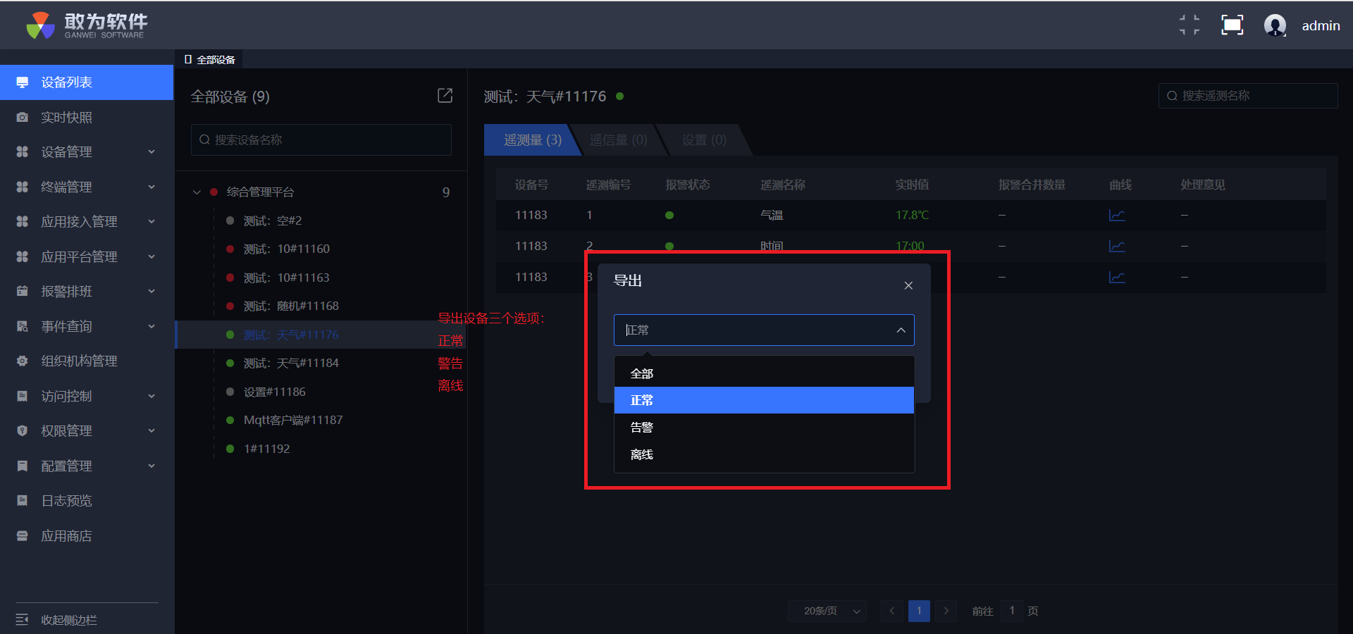 | 4 | 支持导出设备 | 导出告警或离线的设备。 |