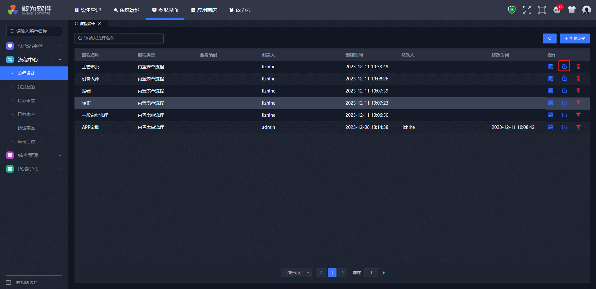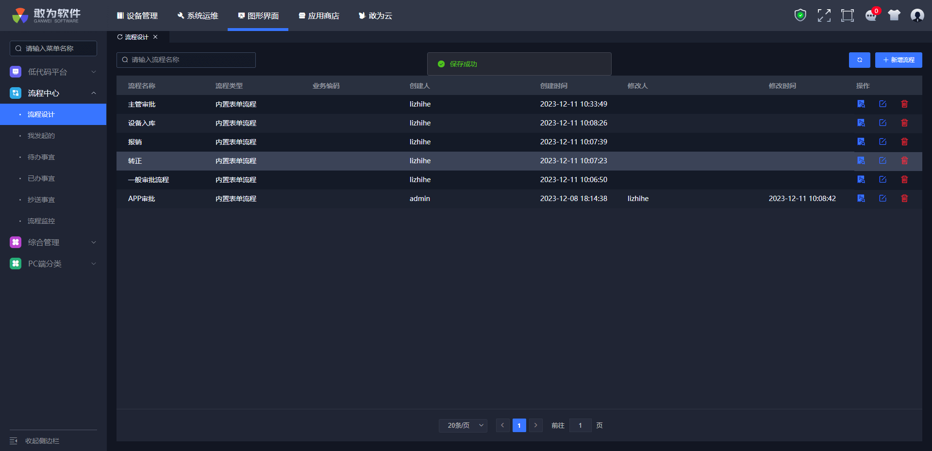 | 2 | 流程设计 | 支持流程设计的新增、删除、修改、查询操作 |