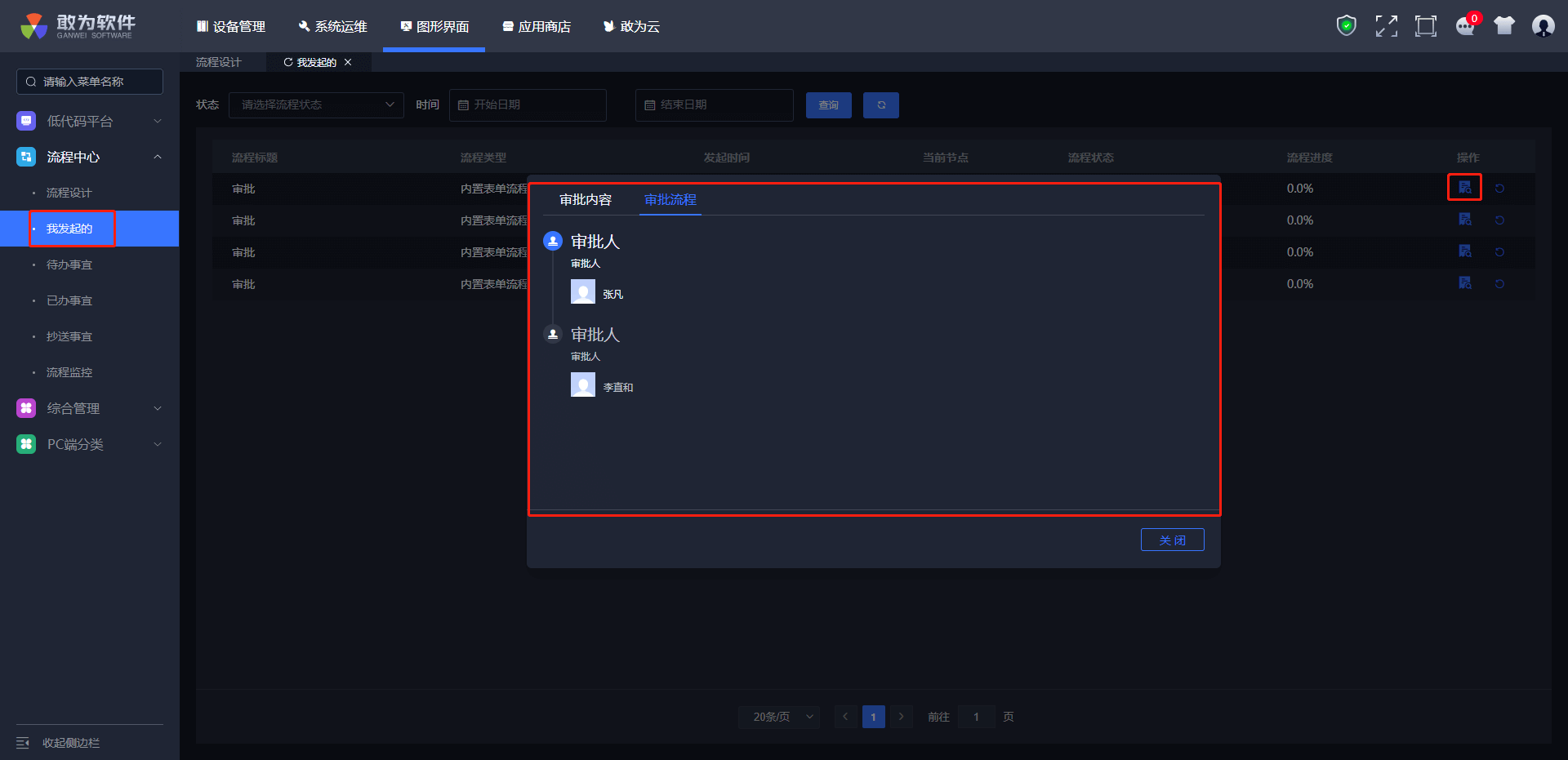| 3 | 我发起的 | 支持查看当前用户发起的流程记录 |