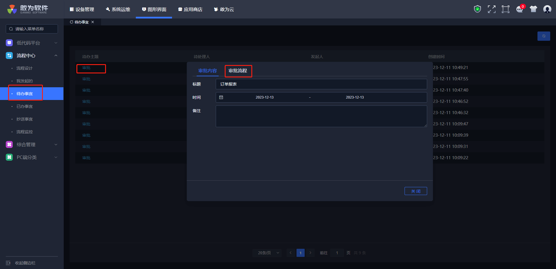 | 4 | 待办事宜 | 支持查看当前用户待处理的流程记录 |