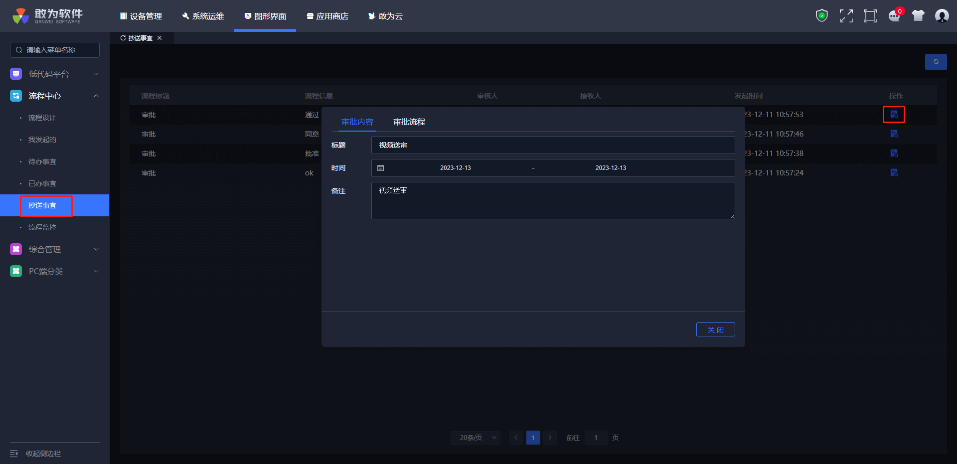 | 5 | 抄送事宜 | 支持查看当前用户所有已办的流程记录 |