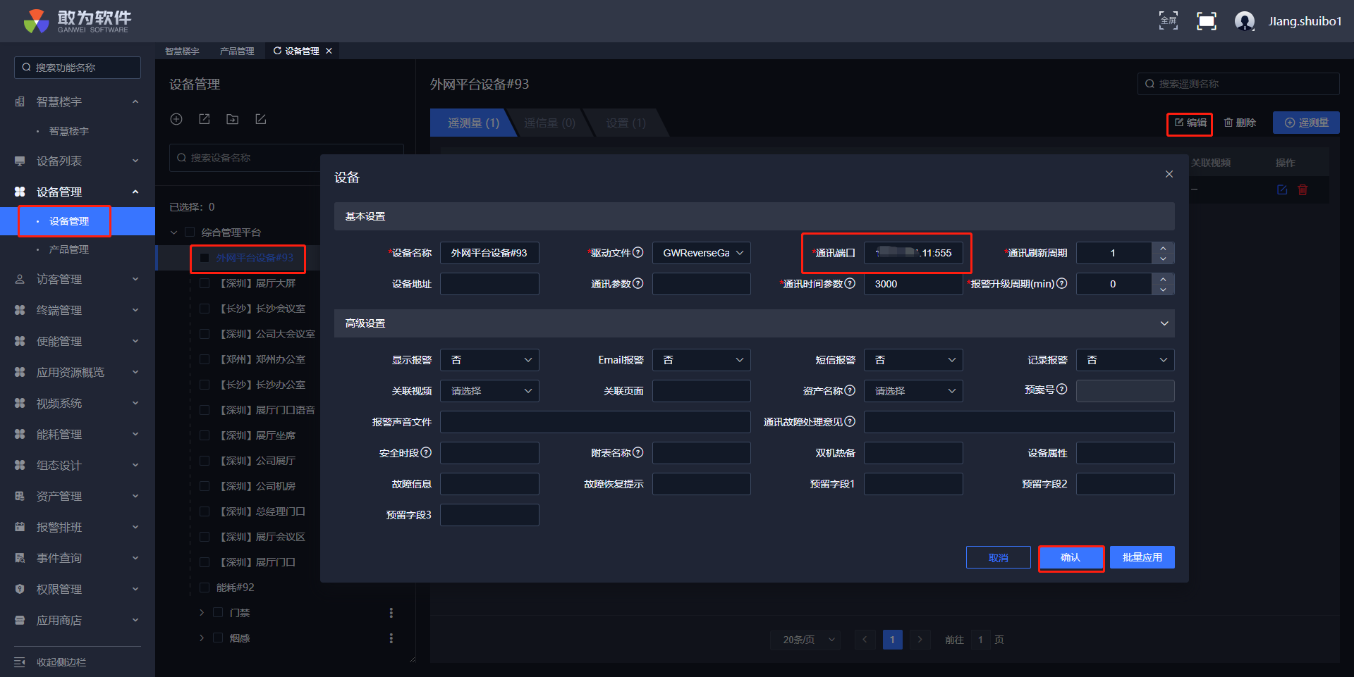 若通过产品添加了多个设备,除了需要修改设备的通讯端口(可以批量修改)外,还必须修改设备遥测、遥信、设置对应的操作命令和操作参数