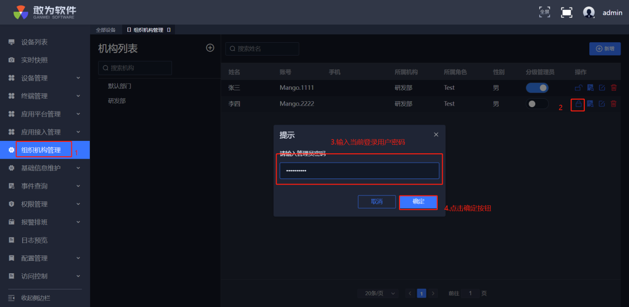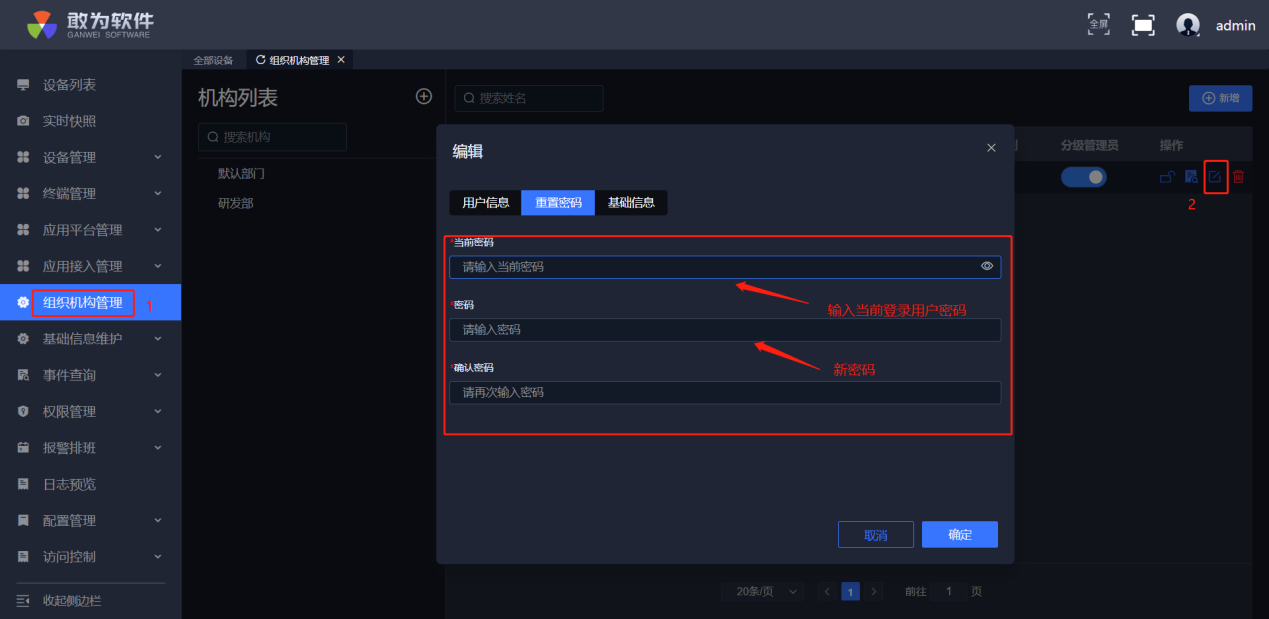 | 6 | 重置密码 | 1、支持管理员设置分级重置密码 2、分级管理员和普通用户不支持此功能 |